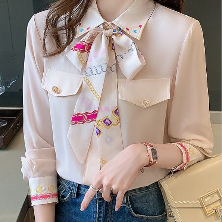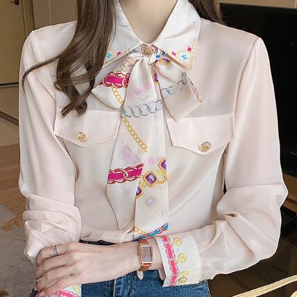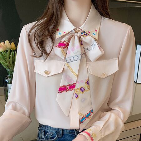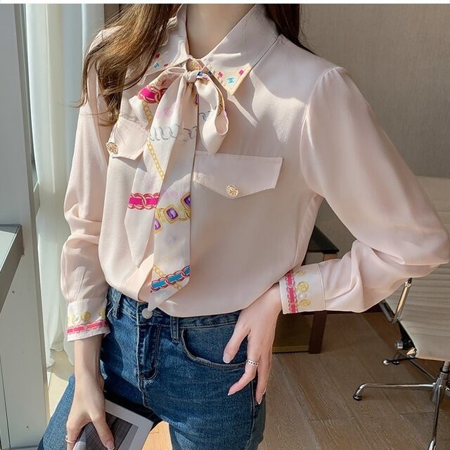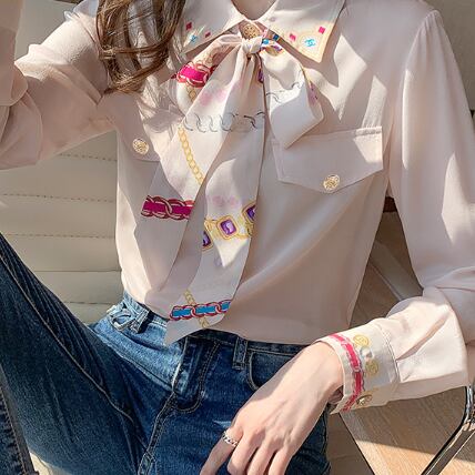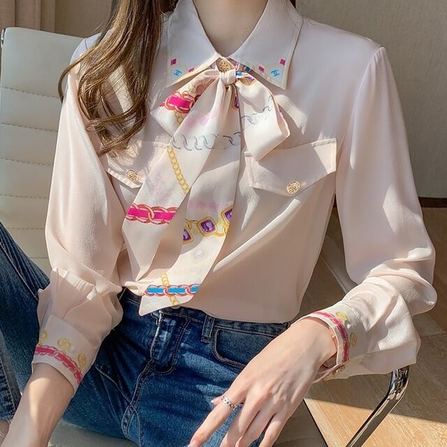 ブラウス レディース 女性用 蝶ネクタイ レース プリント柄 シフォン ロングスリーブ ニッチ ウェスタン ポロ襟 シャツ袖 ポリエステル 大人可愛い かわいい 大人女子 きれいめ 上品 こなれ感 とろみ感 モダン アジアン エレガント 存在感 ガーリー クラシック ラブリー キュート 韓国系 フォーマル 10代 20代 30代 ママ オフィス 通勤 通学 学生 女子会 謝恩会 二次会 母の日 誕生日 カフェ デート 記念日 パーティー イベント インスタ映え おしゃれ オルチャン 普段使い