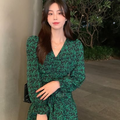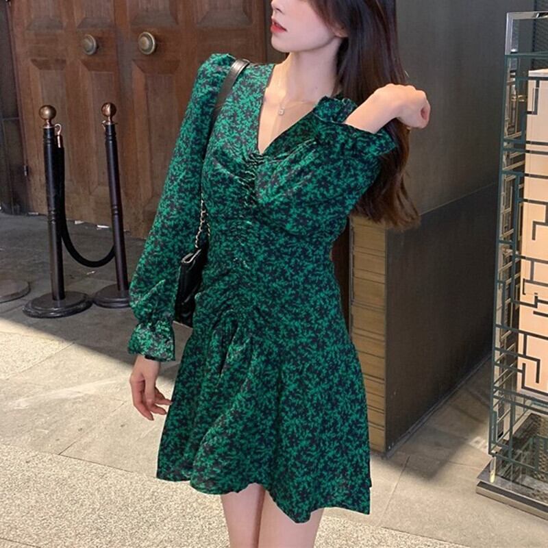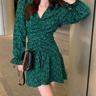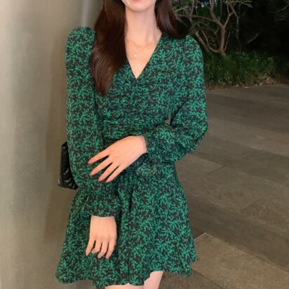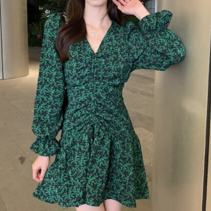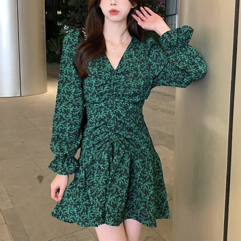 グリーンの爽やかな色味が、軽快で可愛らしさを引き立てるミニ丈ワンピースです。
