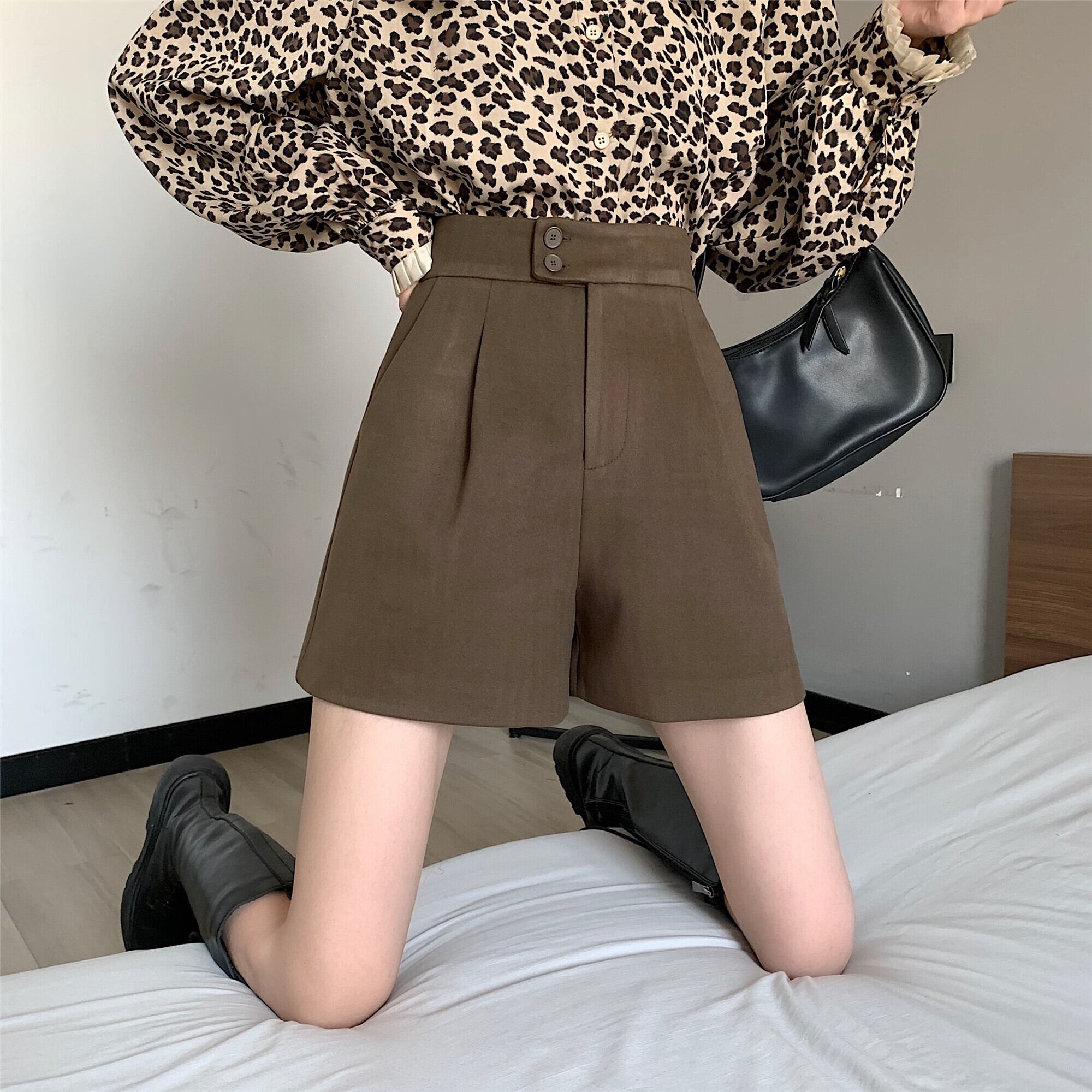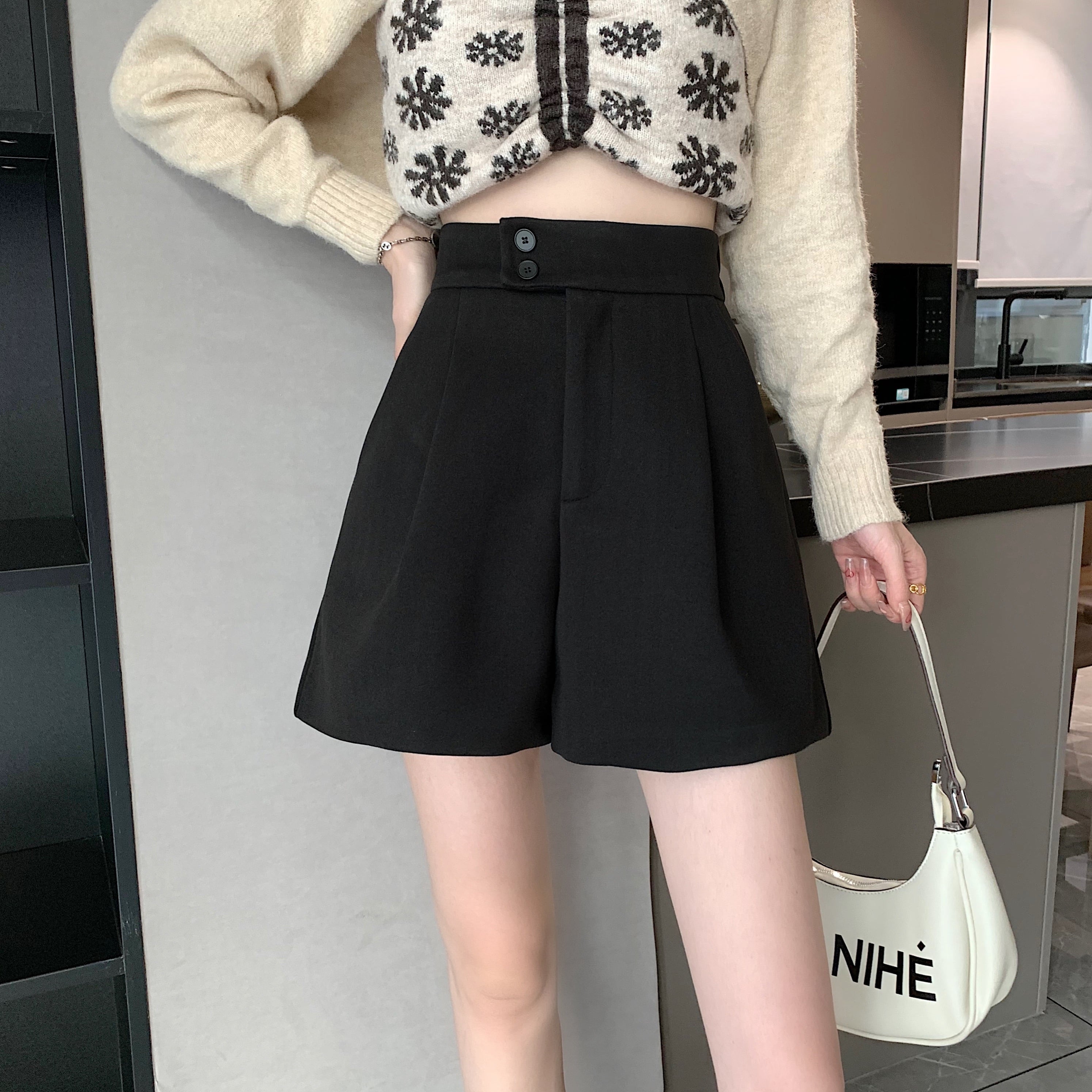 おしゃれで大人女子にぴったりのショートパンツが登場しました!シンプルながらも存在感のあるAラインシルエットで、きれいめなコーデにもカジュアルなコーデにも合わせやすいアイテムです。ボタンとポケットがアクセントになっており、レトロ風の雰囲気も漂います。大人っぽく上品に着こなすのもよし、ラフにこなれ感を演出するのもよし、個性的かわいいスタイリングが叶います。秋冬春と長く使えるので、旅行や女子会、デートやデイリーなど、様々なシーンで活躍してくれます。S, M, Lサイズ展開で、お好みのカラーもブラック、ブラウン、アプリコットからお選びいただけます。素材にもこだわり、着心地抜群です。ぜひ、このショートパンツで主役級の存在感を放って、おしゃれを楽しみましょう!