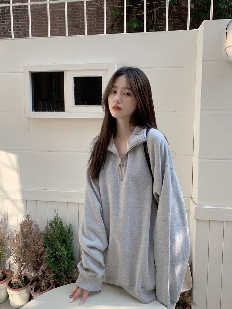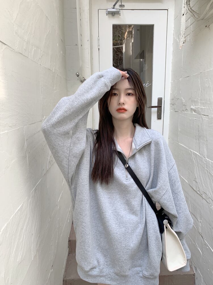 ゆるだぼ トップス トレーナー 袖あり 灰色 グレー 韓国流行 長袖 ボリューム袖 萌袖 スタンドカラー だぼだぼ かわいい 大人可愛い シンプル カジュアル おしゃれ お洒落 大人女子 こなれ感 ラフ メンズライク キュート ガーリー ルーズ 個性的 主役級 存在感 無地 秋 冬 2021 レディース 女性用 学生 通学 デート お出かけ 女子会 お泊まり 休日 イベント 旅行 普段使い 楽ちん 体系カバー プレゼント ギフト 定番 トレンド インポート 海外 フリーサイズ 大きめ ゆったり ゆる