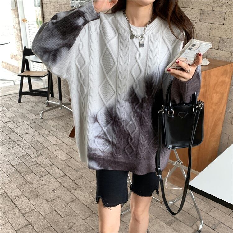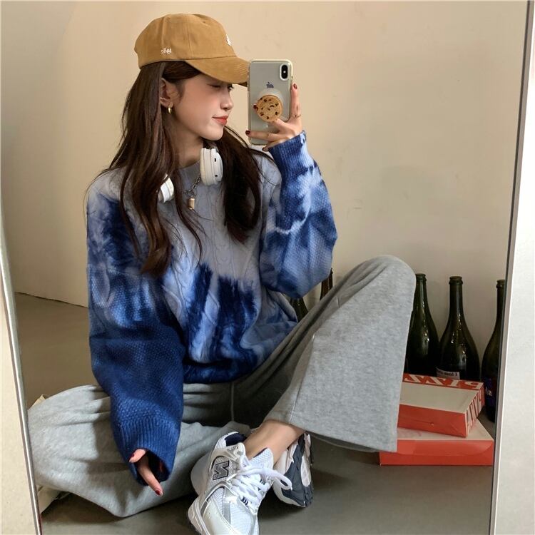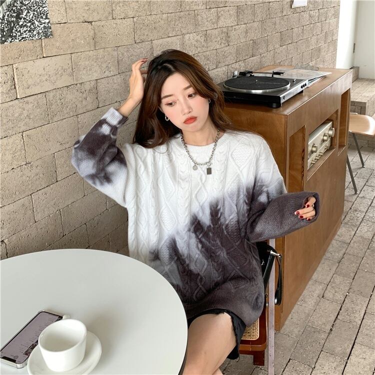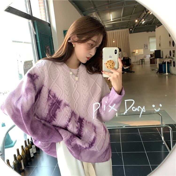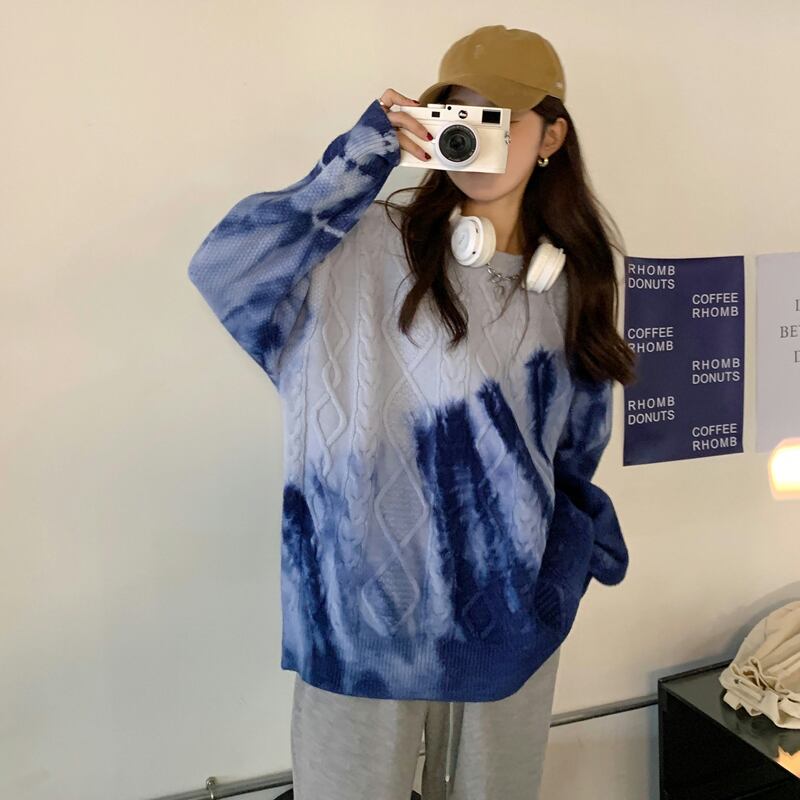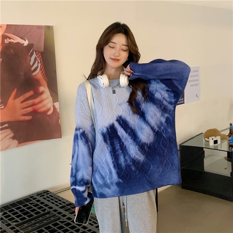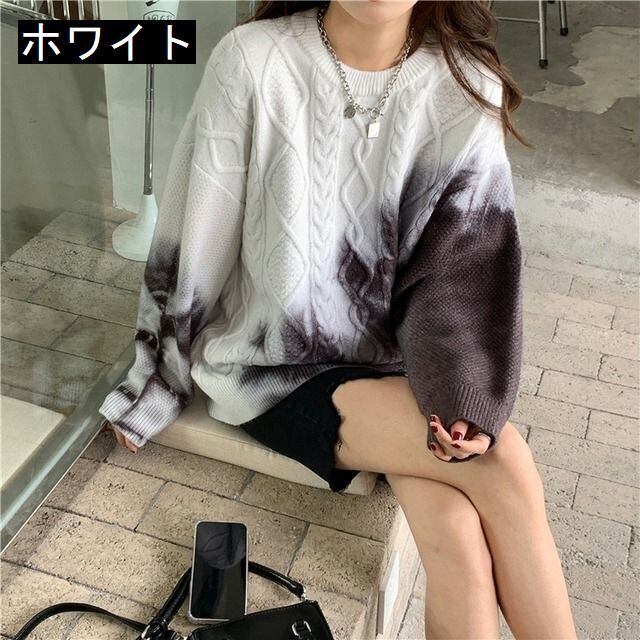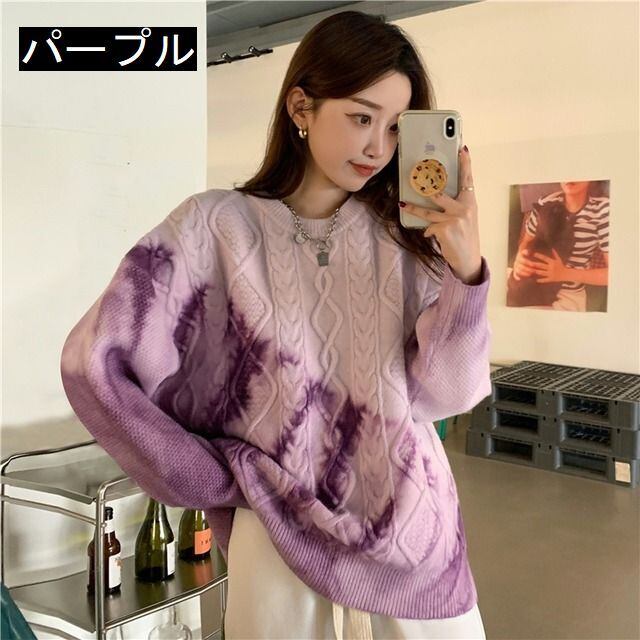ゆるだぼ 絞り染め グラデーション 韓国流行 白 ホワイト 青 ブルー 紫 パープル ピンク セーター ニット トップス 袖あり 長袖 ボリューム袖 ドロップショルダー 萌袖 Uネック ラウンドネック だぼだぼ かわいい 大人可愛い カジュアル おしゃれ お洒落 大人女子 こなれ感 ラフ キュート ルーズ 個性的 秋 冬 レディース 女性用 学生 通学 デート お出かけ 女子会 お泊まり 休日 イベント 旅行 普段使い 楽ちん モテ 体系カバー ギフト おすすめ インポート 大きめ ゆったり ゆる