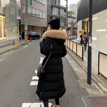 この冬、主役級の存在感を放つアウターが登場しました。ロングコートとダウン風コートのメリットを合わせ持つ、ミディアム丈のロングコート。スリムなシルエットで、女性らしさを保ちつつ、上品な印象を与えます。ベルトを使い、ウエストマークしてもOKです。フードには中綿が入っており、リアルファーの付いた立体的な形状になっています。冬の寒さからしっかりと守り、かつ、素敵に見せてくれる、機能性とオシャレ性を兼ね備えた最高の一枚です。