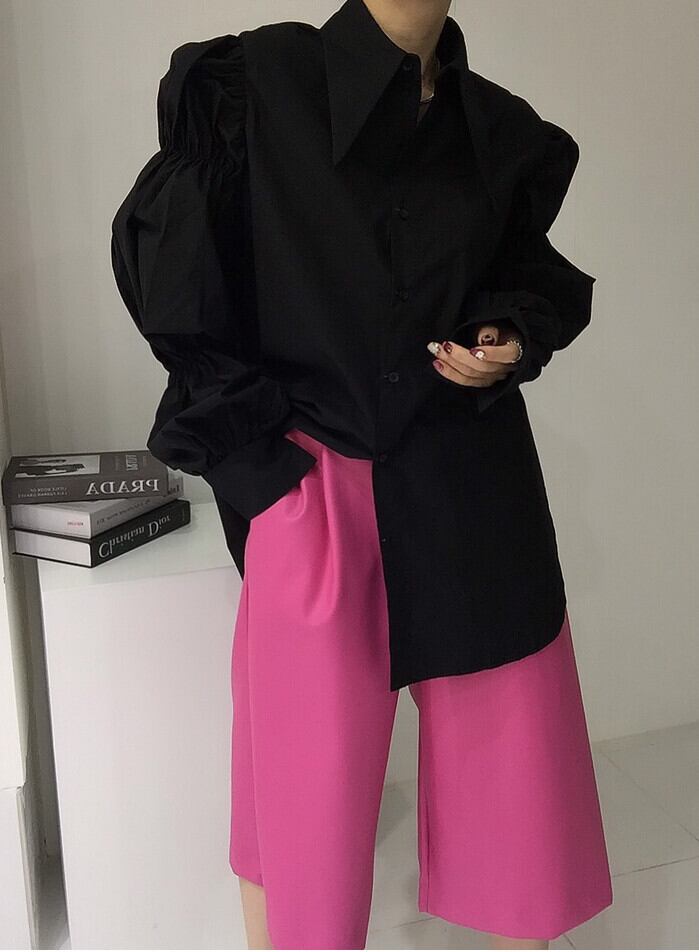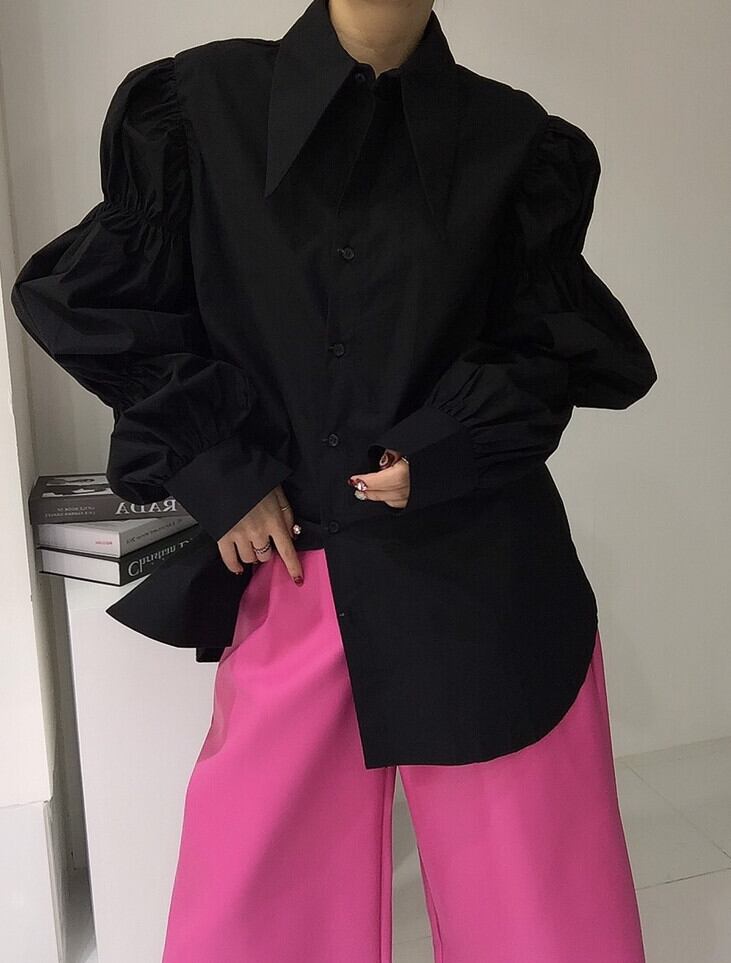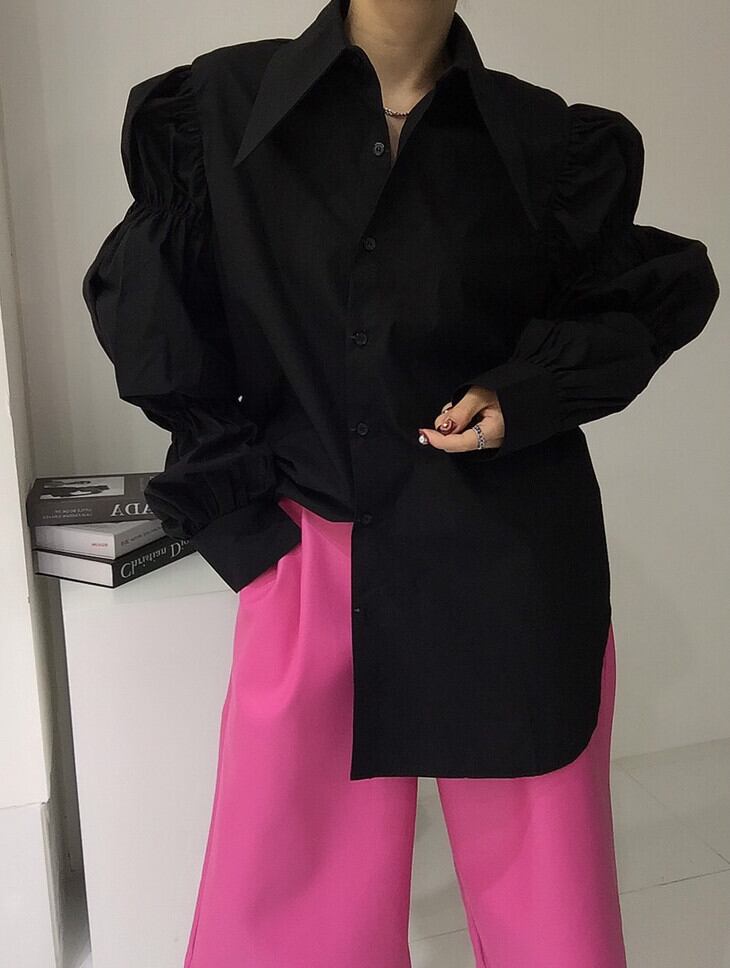 デザインルーズタックパフスリーブシャツ