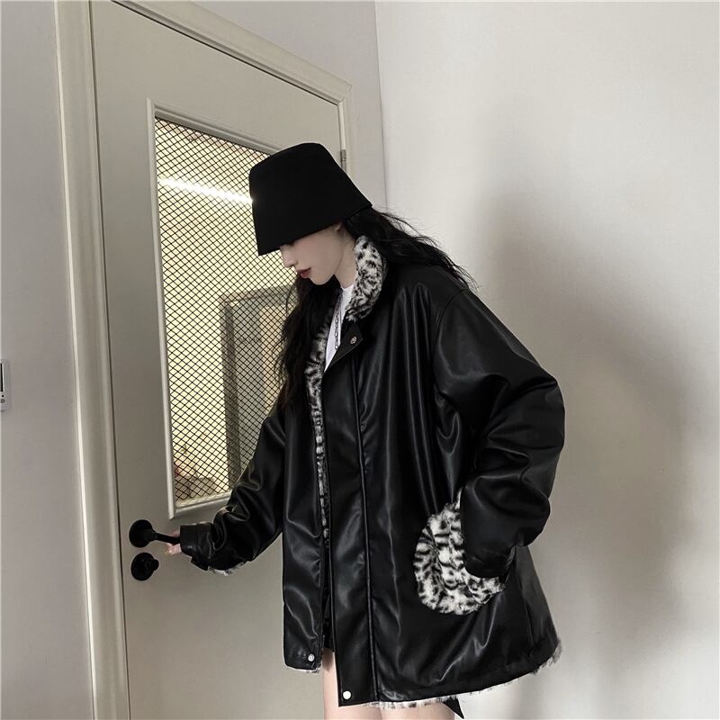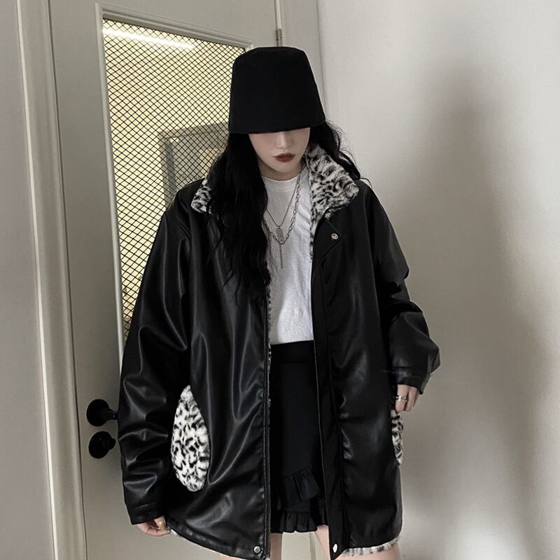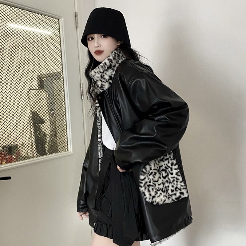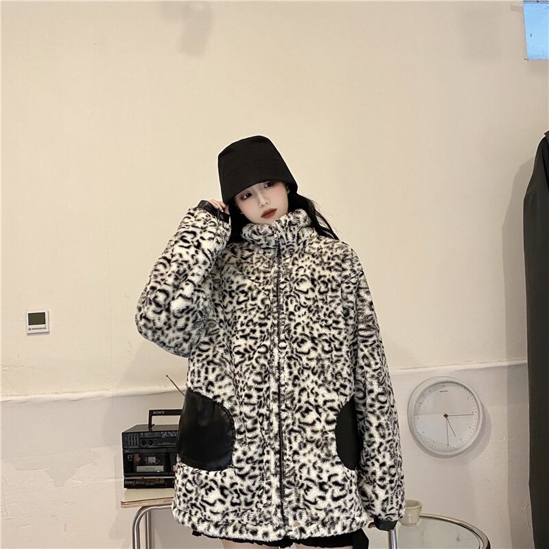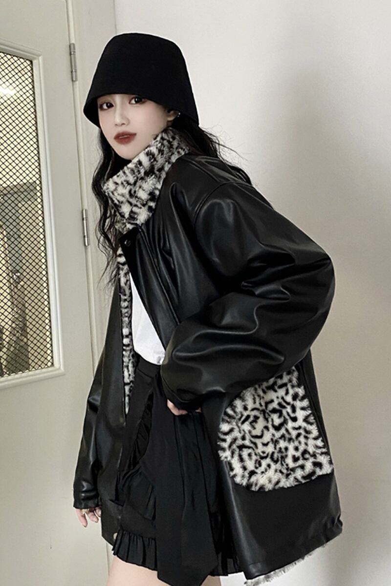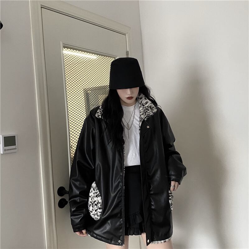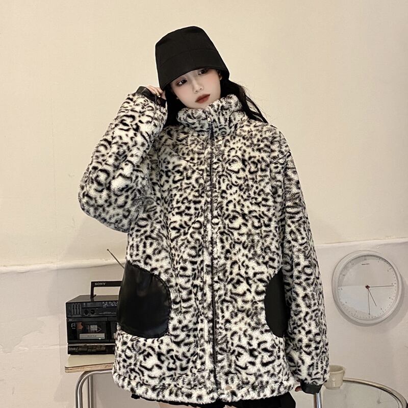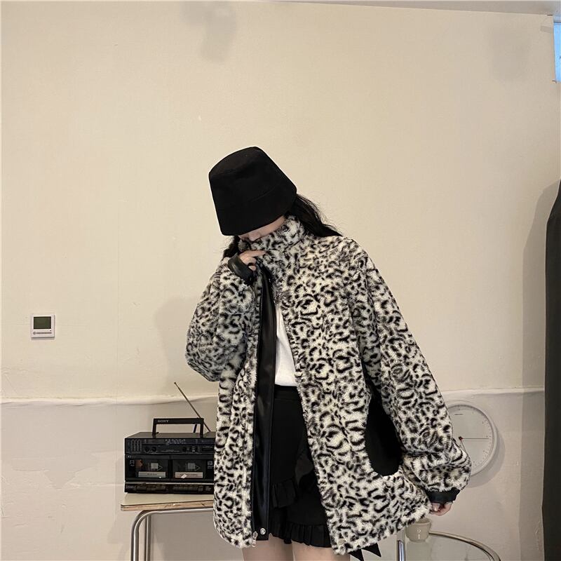リバーシブルコート 魅せる アウター ヒョウ柄 韓国流行 コート ジャケット ミディアム丈 袖あり 長袖 スタンドカラー ストレート ポケット ファスナー ジッパー ファー 大人女子 大人 上品 おしゃれ かっこいい クール モード系 カジュアル レトロ レトロ風 こなれ感 ラフ ルーズ シルエット 個性的 デザイン 主役級 存在感 無地 柄 秋 冬 10代 20代 30代 レディース 女性用 学生 通学 デート お出かけ 女子会 イベント リゾート 旅行 着回し 普段使い 暖かい 防寒 M L