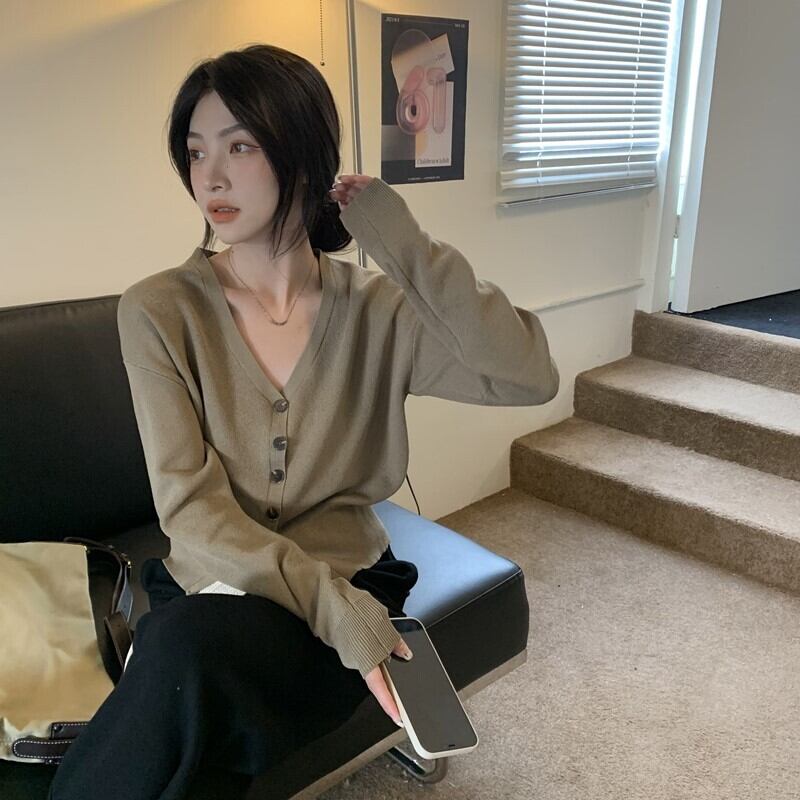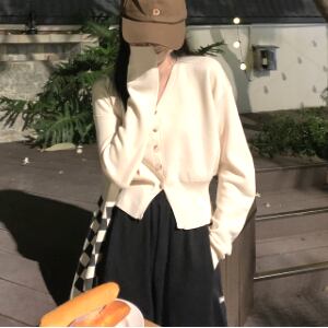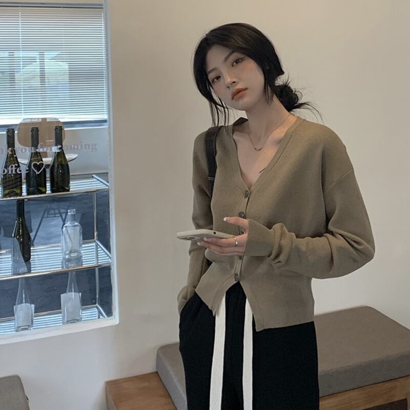 ショートカーディガン 魅せる ブラック アプリコット カーキ トップス 冬新作入荷 セーター カーディガン ショート丈 袖あり 長袖 Vネック シングルブレスト ボタン 大人女子 大人 上品 おしゃれ きれいめ シンプル エレガント レトロ レトロ風 こなれ感 ラフ ルーズ シルエット 個性的 デザイン 主役級 存在感 無地 春 スプリング 秋 オータム 10代 20代 レディース 女性用 学生 通学 デート お出かけ 女子会 着回し 普段使い ファッション コーデ ワンサイズ