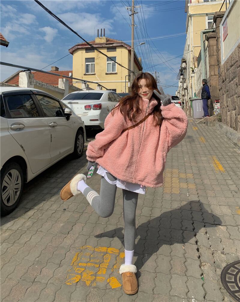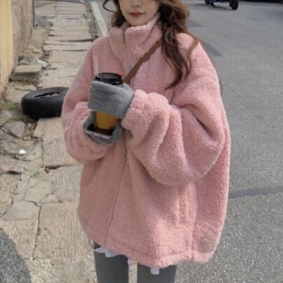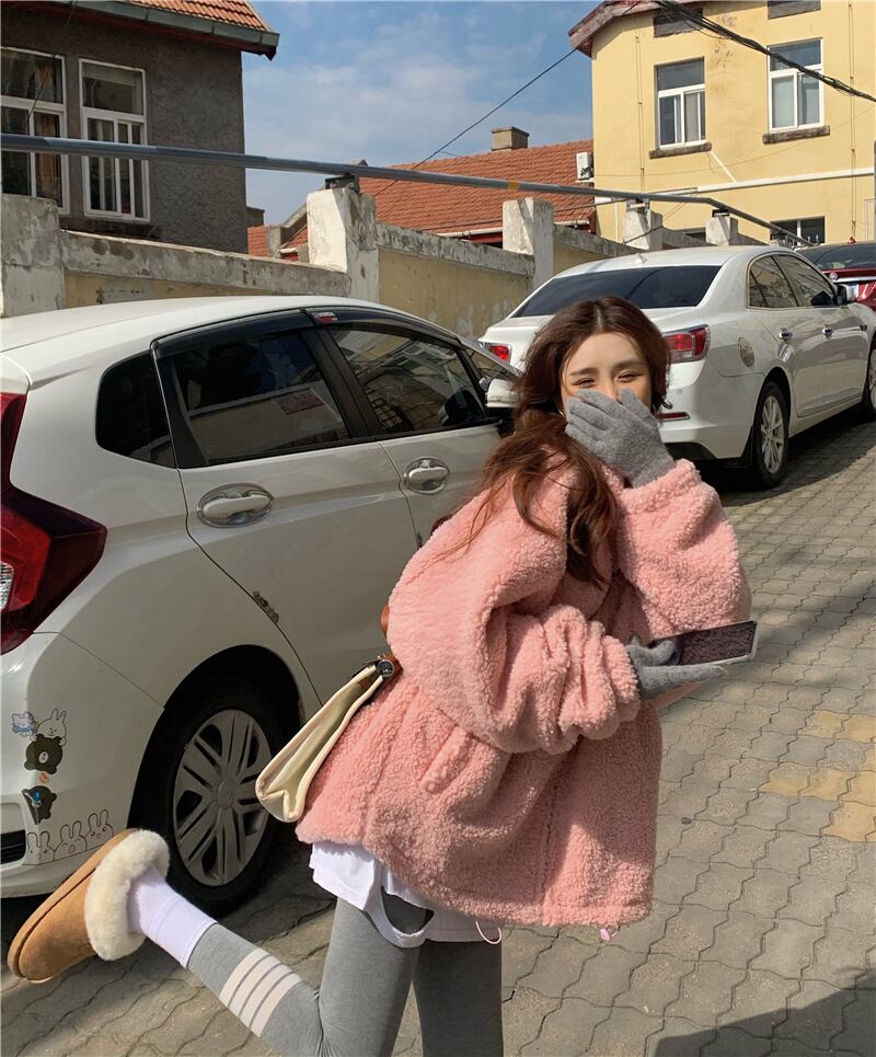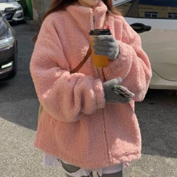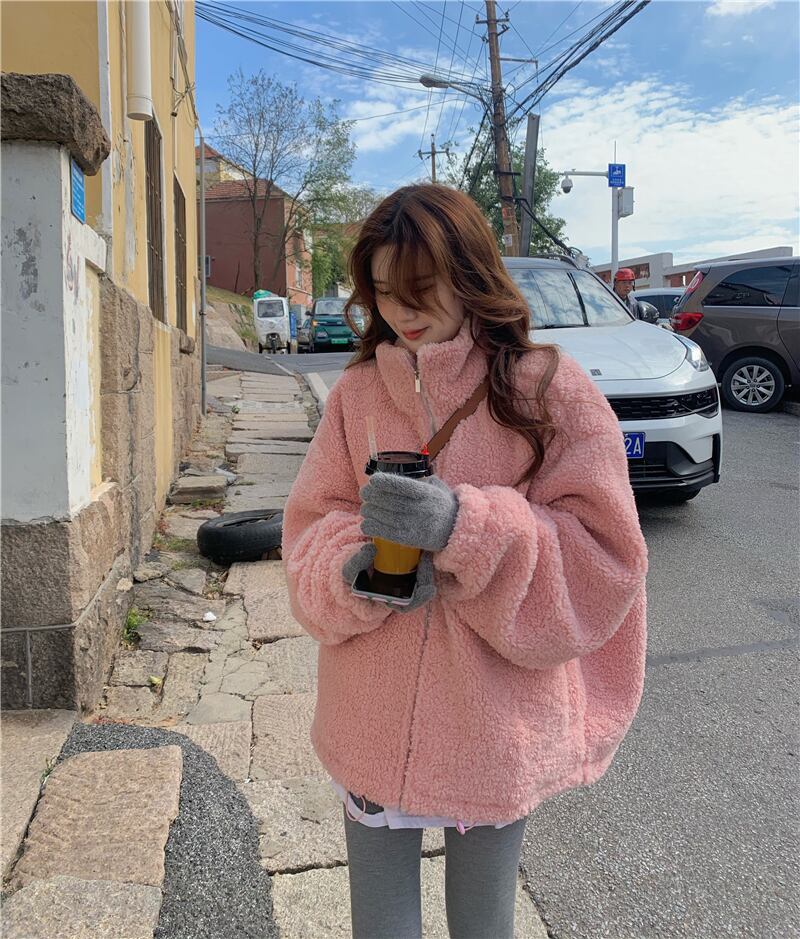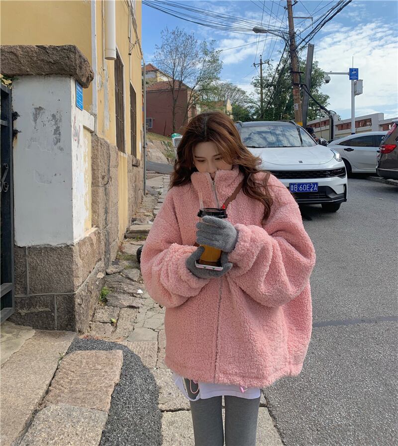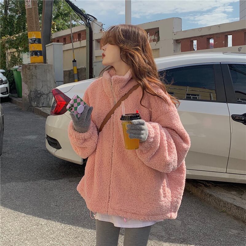 アウター コート ピンク ブルゾン ジャケット シャンパー 韓国流行 上着 もこもこアウター ボアブルゾン ミディアム丈 もこもこ モコモコ ふわふわ ファスナー ポケット ウール ボア 厚手 かわいい シンプル カジュアル 大人可愛い こなれ感 ラフ ラブリー キュート ガーリー 個性的 存在感 抜け感 無地 秋 冬 10代 20代 レディース 学生 通学 デート お出かけ 女子会 お泊まり 休日 アウトドア 旅行 公園 普段使い 韓国 コーデ 楽ちん 暖かい 防寒 フリーサイズ ゆったり ゆる