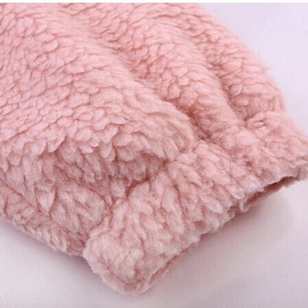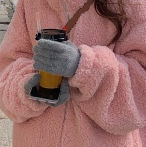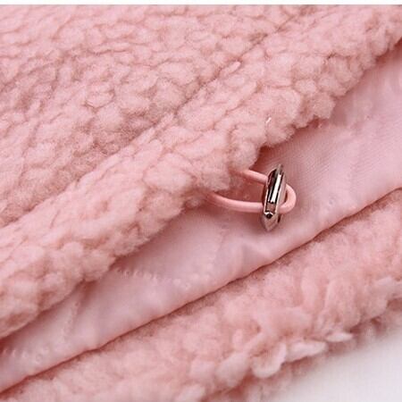 ピンクのもこもこラムウールコート。
