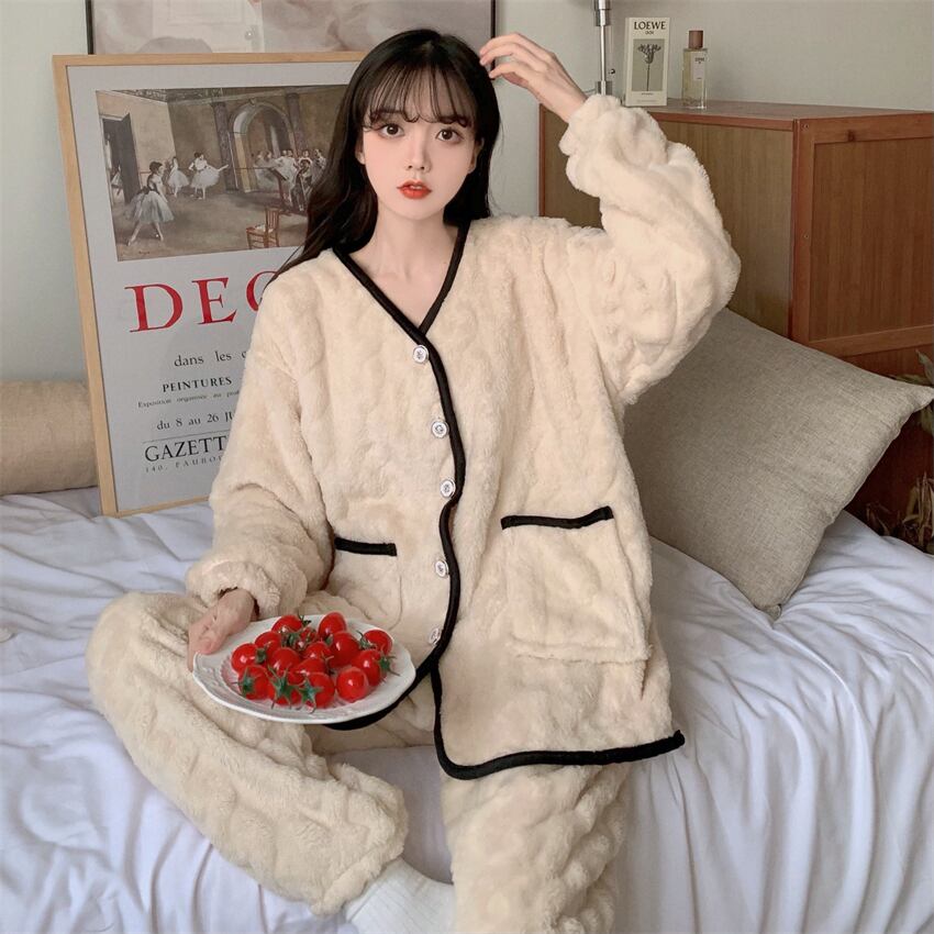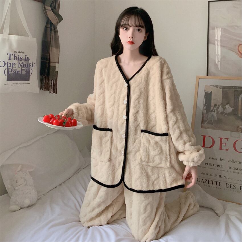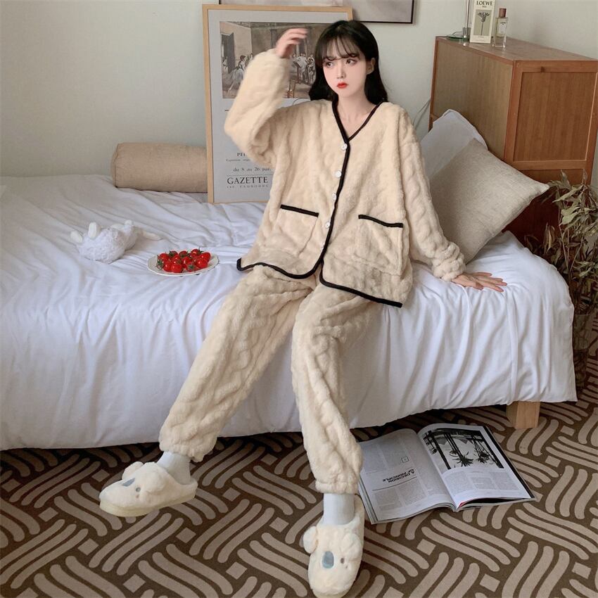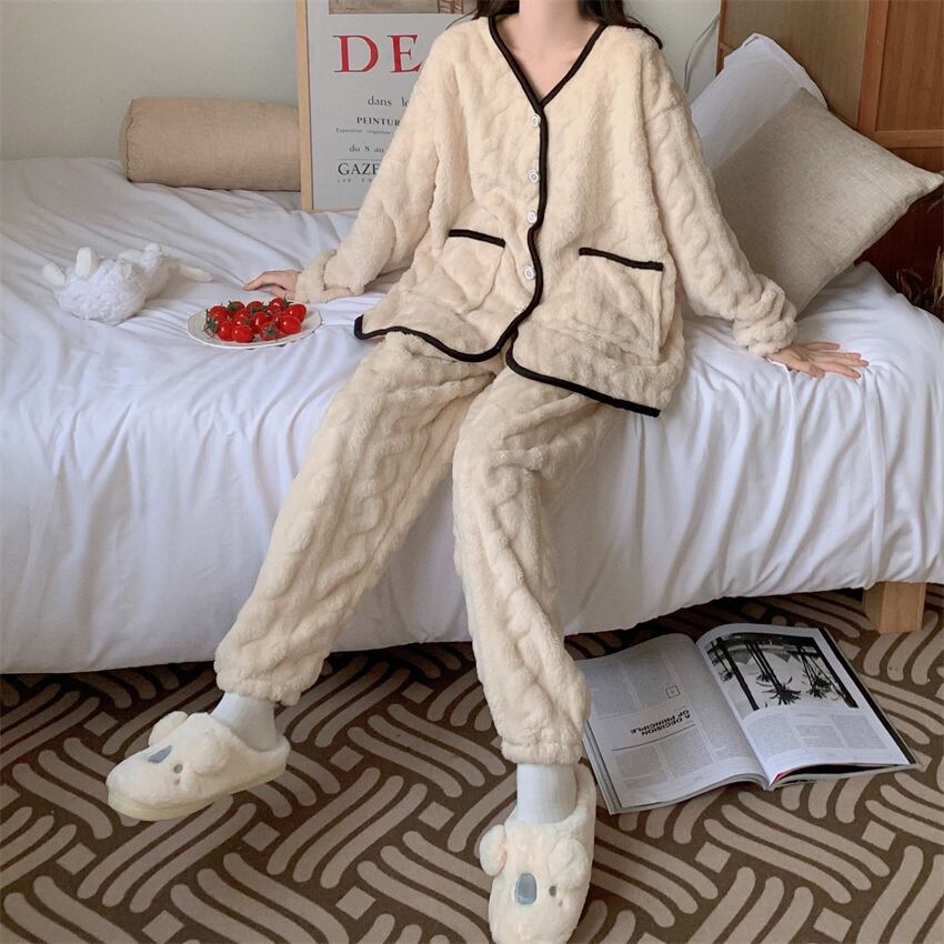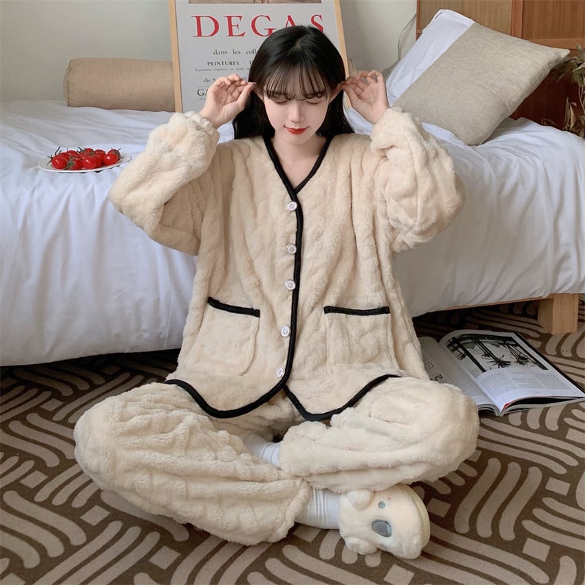 長袖パジャマ 魅せる パジャマ ルームウェア オフホワイト 部屋着 冬新作入荷 リラックス レギュラー丈 袖あり 長袖 Vネック ストレート シングルブレスト ウエストゴム モコモコ 薄手 大人女子 大人 上品 おしゃれ カジュアル レトロ レトロ風 こなれ感 ラフ ルーズ シルエット キュート ガーリー かわいい 女子 ラブリー 無地 秋 冬 10代 20代 レディース 女性用 休日 おうち 着回し 普段使い ファッション コーデ らくちん 暖かい 防寒 スタイル ワンサイズ