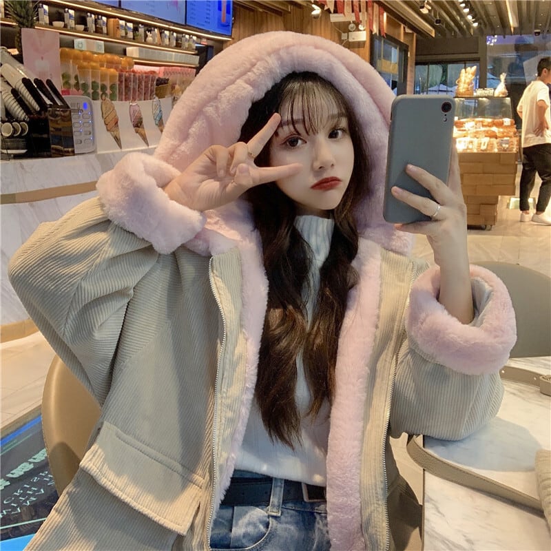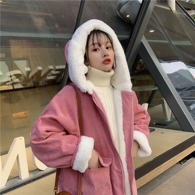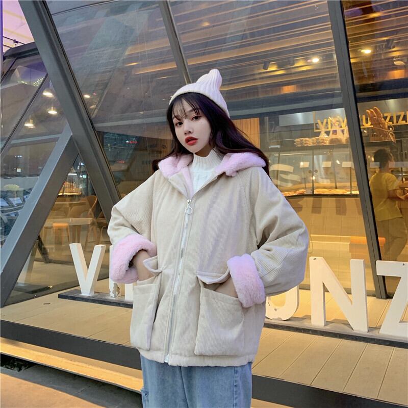 アウター コート ブルゾン ジャケット シャンパー ベージュ 韓国ファッション 上着 長袖 もこもこ モコモコ ふわふわ フード付き ファスナー ポケット 綿 厚手 コーデュロイ かわいい 大人可愛い おしゃれ レトロ 大人可愛い 大人女子 こなれ感 ラフ ラブリー キュート ガーリー ルーズ 個性的 主役級 存在感 無地 秋 冬 10代 20代 学生 通学 デート お出かけ 女子会 休日 公園 普段使い 韓国 韓国系 コーデ スタイル 楽ちん 暖かい 防寒 モテ サイズ フリーサイズ ゆったり ゆる