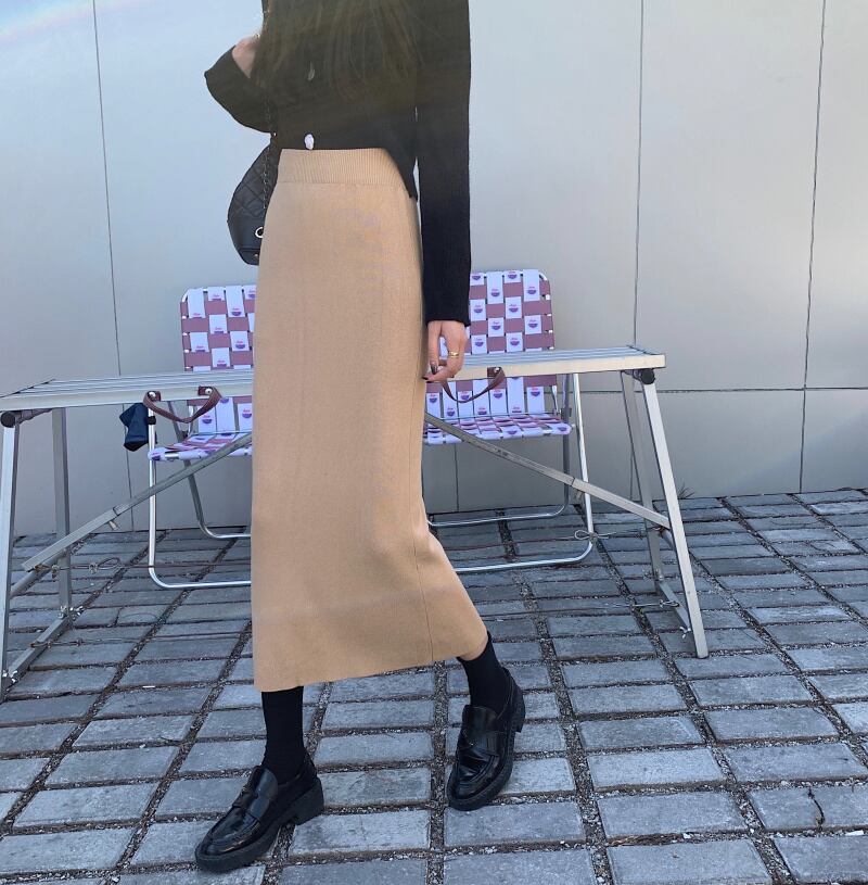 スカート ボトムス ニットスカート ロング ロング丈 韓国ファッション スリム スマート ハイウエスト ニット かわいい 大人可愛い きれいめ シンプル 大人 上品 おしゃれ お洒落 かっこいい レトロ 大人可愛い 大人女子 こなれ感 ラフ 無地 秋 冬 2021 10代 20代 30代 レディース ママ オフィス OL 通勤 学生 通学 デート お出かけ 女子会 休日 公園 着回し 普段使い 韓国 ファッション コーデ スタイル 暖かい モテ 脚長 トレンド フリーサイズ ブラック グレー ベージュ