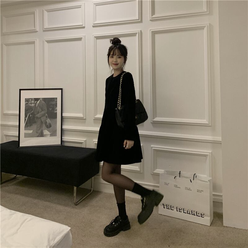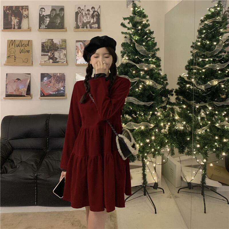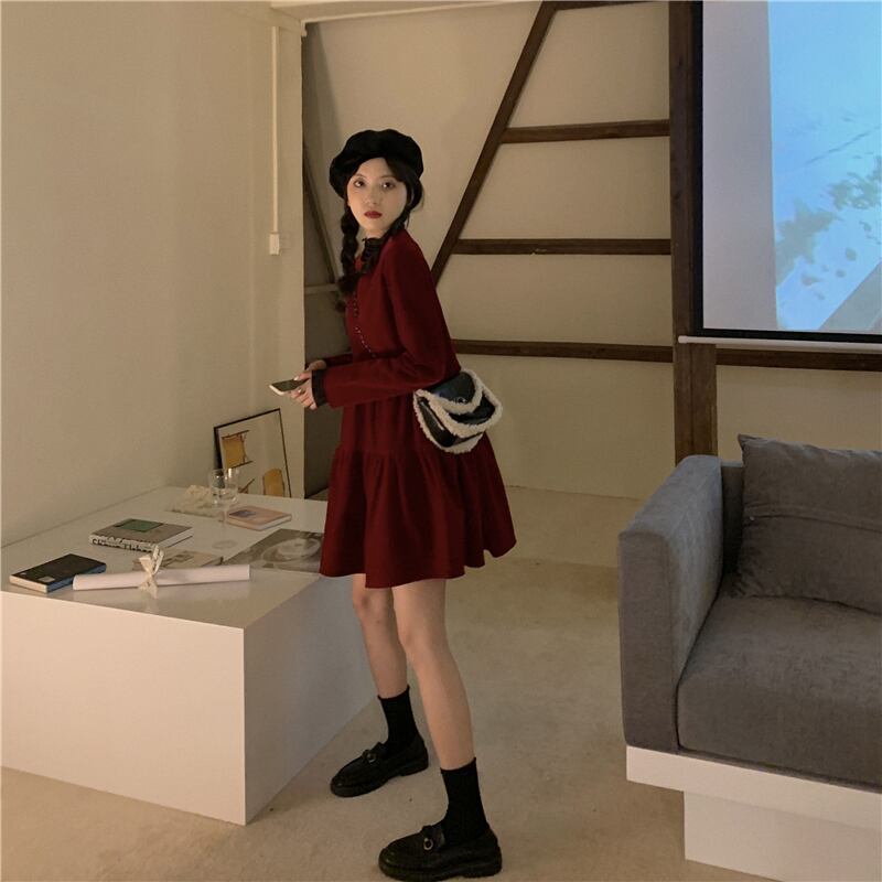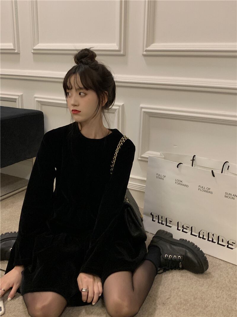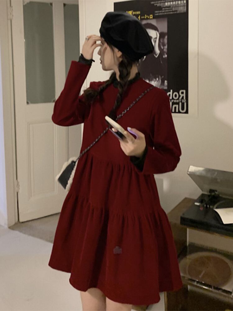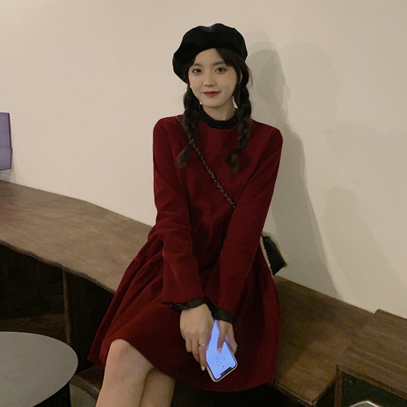 ワンピース 膝丈 ひざ丈 長袖 ラウンドネック かわいい 黒 ブラック 赤 レッド 韓国流行 大人可愛い きれいめ シンプル カジュアル 大人 上品 おしゃれ お洒落 大人可愛い 大人女子 こなれ感 ラフ メンズライク キュート 個性的 主役級 存在感 抜け感 無地 秋 冬 10代 20代 レディース 学生 通学 デート お出かけ 女子会 お泊まり 休日 普段使い ファッション コーデ スタイル 楽ちん モテ 美脚 脚長 送料無料 トレンド 流行 インスタ映え S M ゆったり