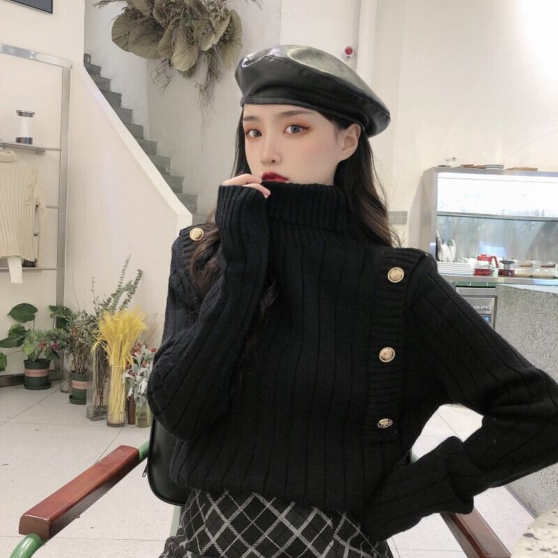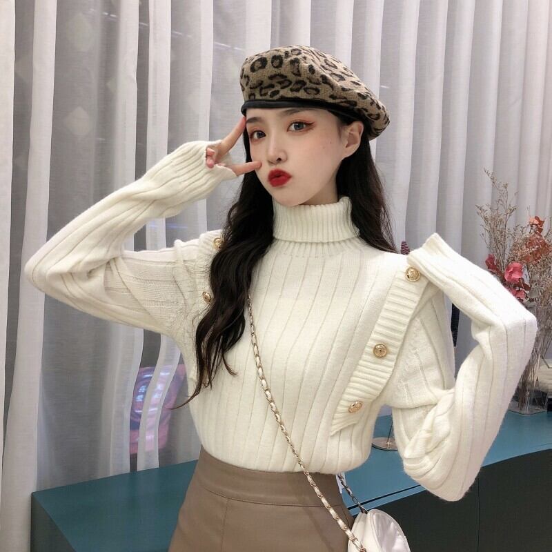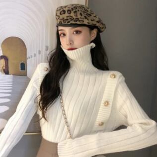 タートルネックと萌え袖が可愛いシルエットを演出します。