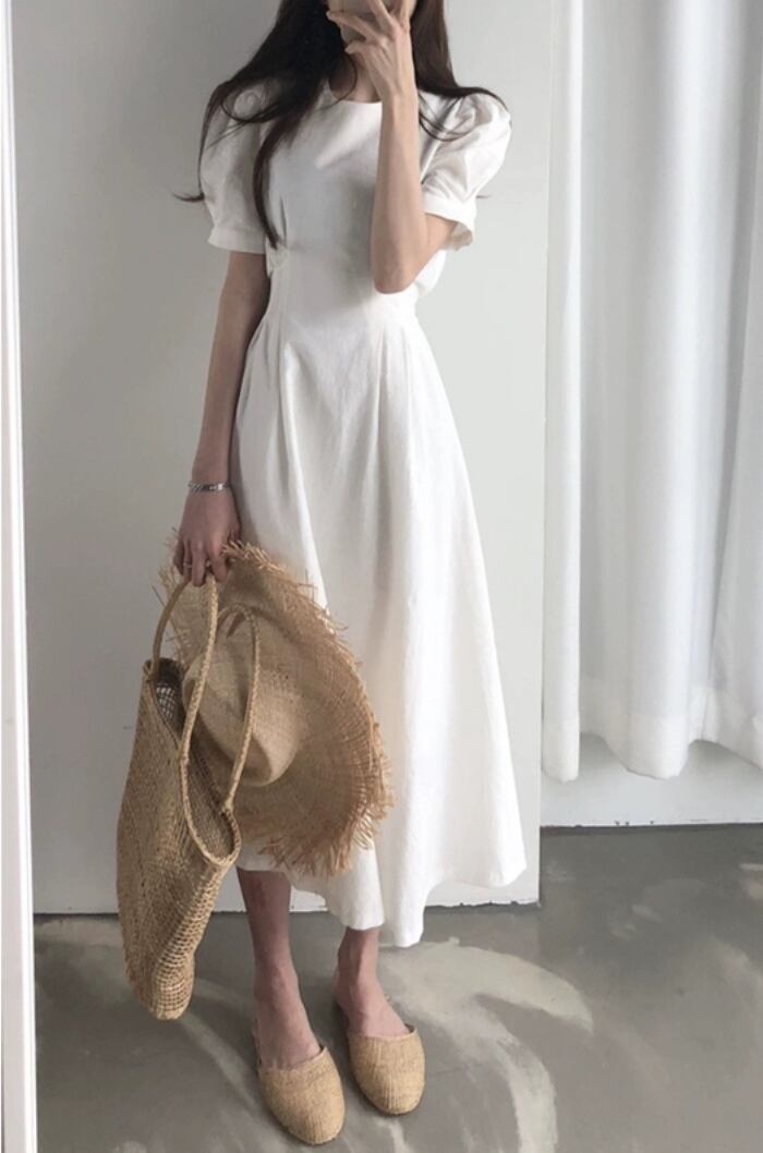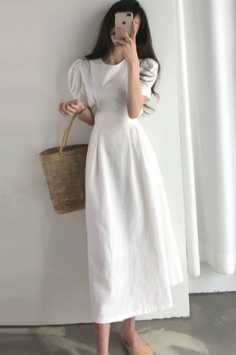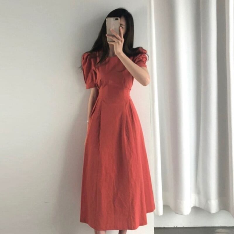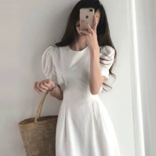 ワンピース ミモレ丈 半袖 ボリューム袖 白 ホワイト 赤 レッド 韓国流行 Aライン ウエストリボン かわいい 大人可愛い きれいめ シンプル カジュアル 大人 上品 おしゃれ お洒落 大人可愛い 大人女子 こなれ感 メンズライク キュート 個性的 主役級 存在感 無地 春 夏 10代 20代 レディース 学生 通学 デート お出かけ 女子会 お泊まり 休日 イベント 普段使い 重ね着 ファッション コーデ スタイル 楽ちん モテ 脚長 送料無料 トレンド 流行 インスタ映え S M ゆったり ゆる