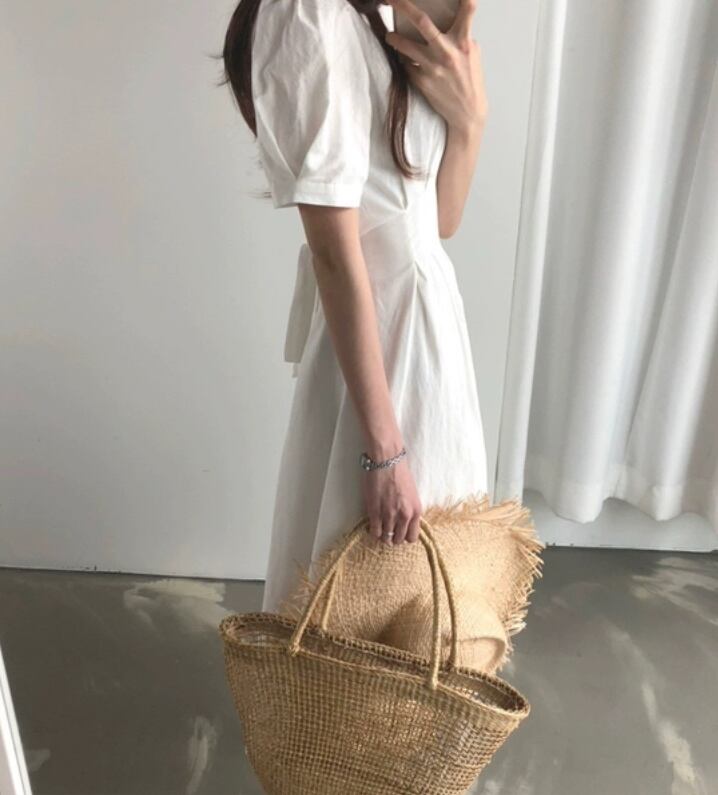 Aラインのシルエットに、ボリューム感のある袖がキュートなワンピースです。ミモレ丈で落ち着いた雰囲気もあり、重ね着にも最適。リボンをウエストに巻くことで、カジュアルにもきれいめにも着こなせます。白、赤の無地は爽やかで、ホワイト、レッドのカラー展開は女性らしさを強調。どちらも上品な印象なので、デートや女子会にぴったりです。