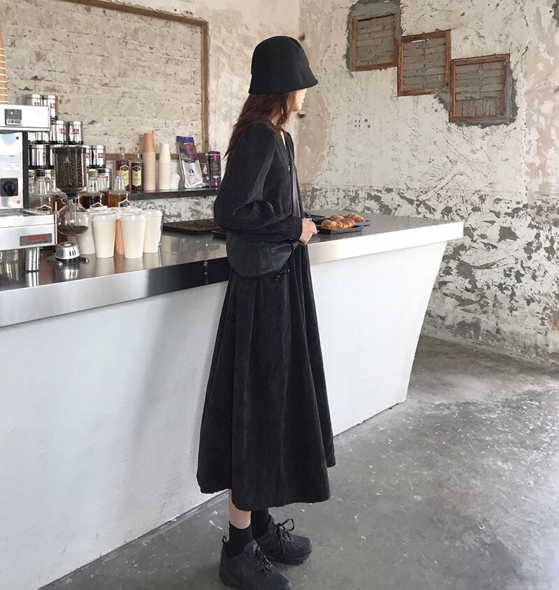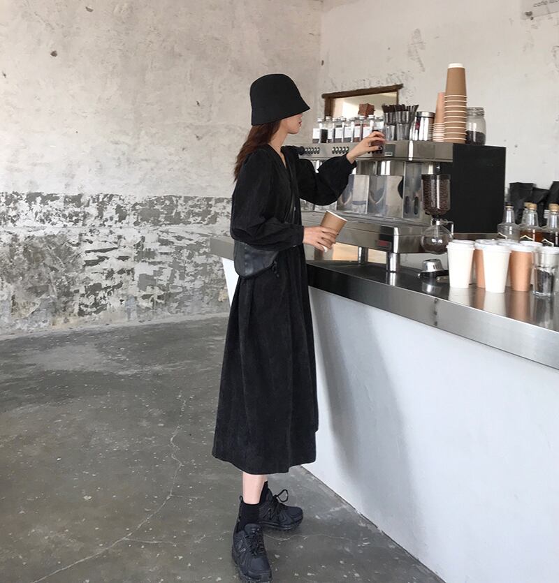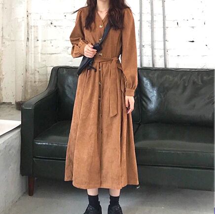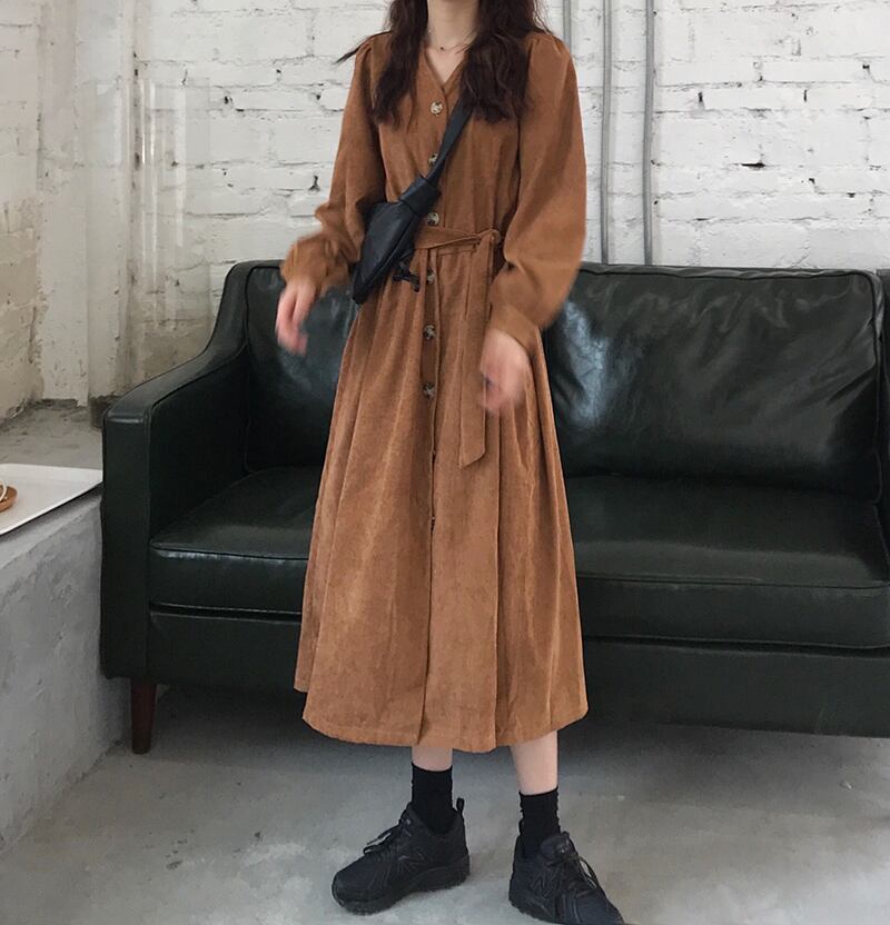 ワンピース ロング丈 長袖 Vネック 黒 ブラック 韓国流行 茶色 ブラウン ストレート ウエストリボン かわいい 大人可愛い きれいめ シンプル カジュアル 上品 おしゃれ お洒落 大人可愛い 大人女子 こなれ感 メンズライク 個性的 主役級 存在感 無地 秋 冬 10代 20代 レディース 学生 通学 デート お出かけ 女子会 お泊まり 休日 普段使い 重ね着 ファッション コーデ スタイル 楽ちん モテ 送料無料 トレンド 流行 インスタ映え M L XL 2XL 3XL 4XL ゆったり ゆる