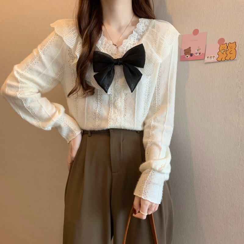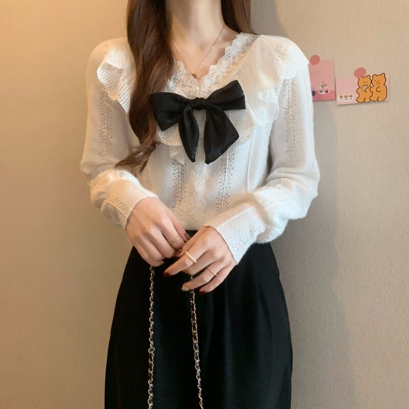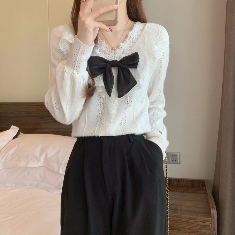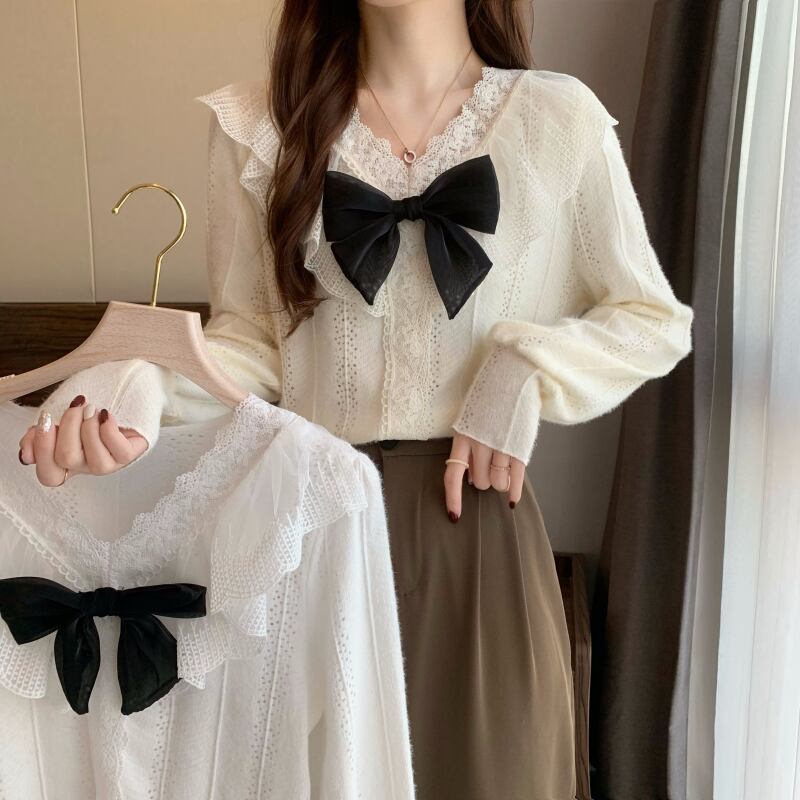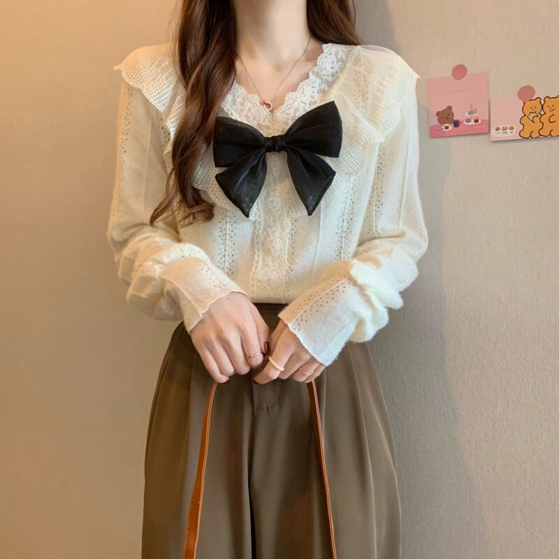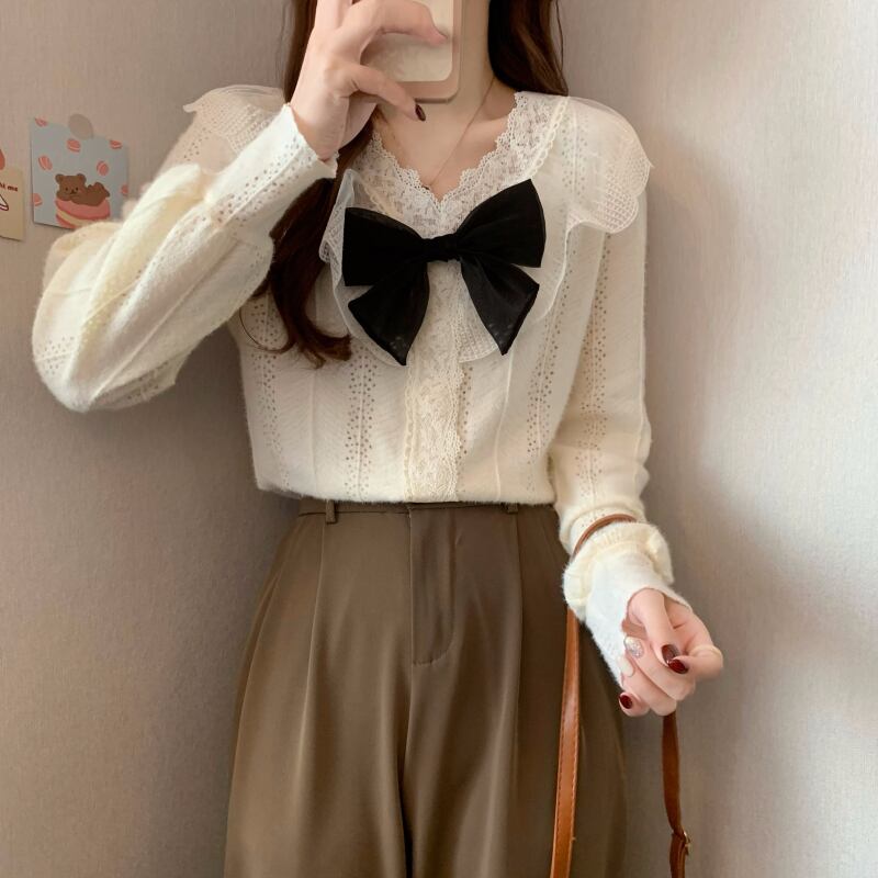 リボン レース フリル トップス カットソー アプリコット 韓国流行 ホワイト 長袖 Vネック 萌え袖 ボウ フリーサイズ ワンサイズ かわいい 大人可愛い きれいめ ゆるふわ シンプル カジュアル 大人 上品 おしゃれ お洒落 大人女子 こなれ感 キュート ガーリー エレガント 個性的 主役級 存在感 春 秋 冬 2021 レディース 女性用 学生 デート お出かけ 女子会 イベント 旅行 着回し 普段使い 韓国系 モテ トレンド 流行 定番 インスタ映え おすすめ インポート 10代 20代 ギフト