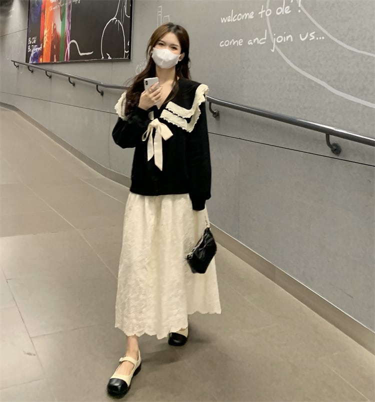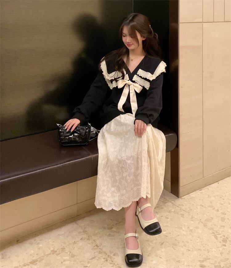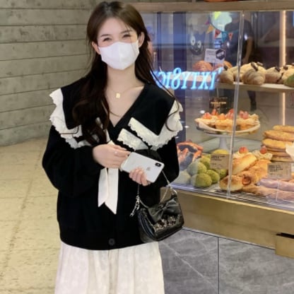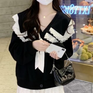 この秋、注目のトップスが新登場!黒のベースに異素材MIXで切り替えデザインを施し、レースやリボン、ボタン装飾で大人可愛い雰囲気を演出しています。襟付きできれいめな印象もあり、オフィスやデート、女子会など様々なシーンで活躍してくれます。