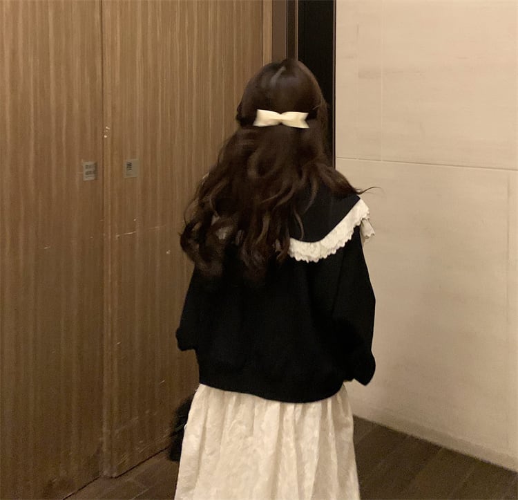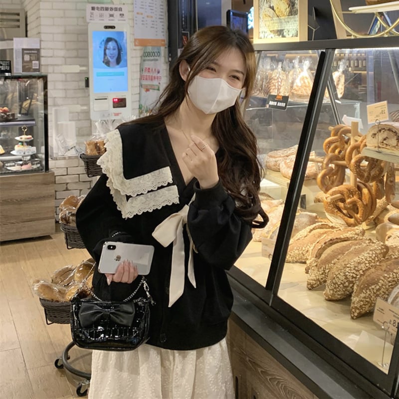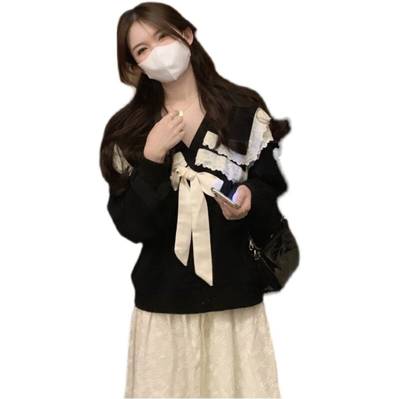 トップス シャツ ブラウス ジャケット 秋新作レディース 黒 ブラック 長袖 襟付き 切り替えデザイン レース リボン ボタン 異素材MIX かわいい 大人可愛い きれいめ 大人 おしゃれ レトロ 大人可愛い 大人女子 こなれ感 ラブリー ガーリー ルーズ 個性的 主役級 存在感 とろみ感 ピュア シック 秋 冬 誕生日 2021 10代 20代 レディース デート お出かけ 女子会 休日 ホテル レストラン 韓国系 ファッション コーデ モテ 新作 インスタ映え フリーサイズ ゆったり