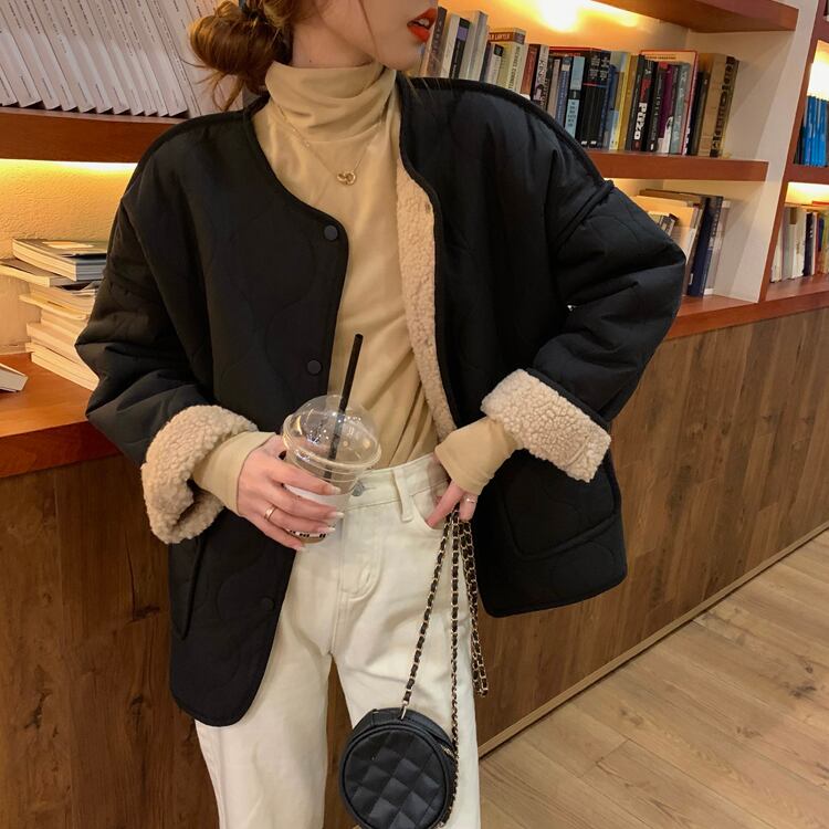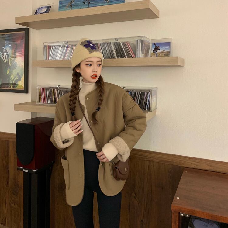 アウター ブルゾン 上着 もこもこアウター 韓国流行 黒 ブラック 茶色 ブラウン 長袖 襟なし もこもこ モコモコ ポケット かわいい 大人可愛い きれいめ シンプル カジュアル 大人 おしゃれ お洒落 大人可愛い 大人女子 こなれ感 ラフ メンズライク 個性的 主役級 存在感 抜け感 無地 秋 冬 10代 20代 レディース 学生 通学 デート お出かけ 着回し 普段使い ファッション コーデ スタイル 楽ちん 暖かい 防寒 モテ 送料無料 トレンド 流行 インスタ映え ゆったり ゆる