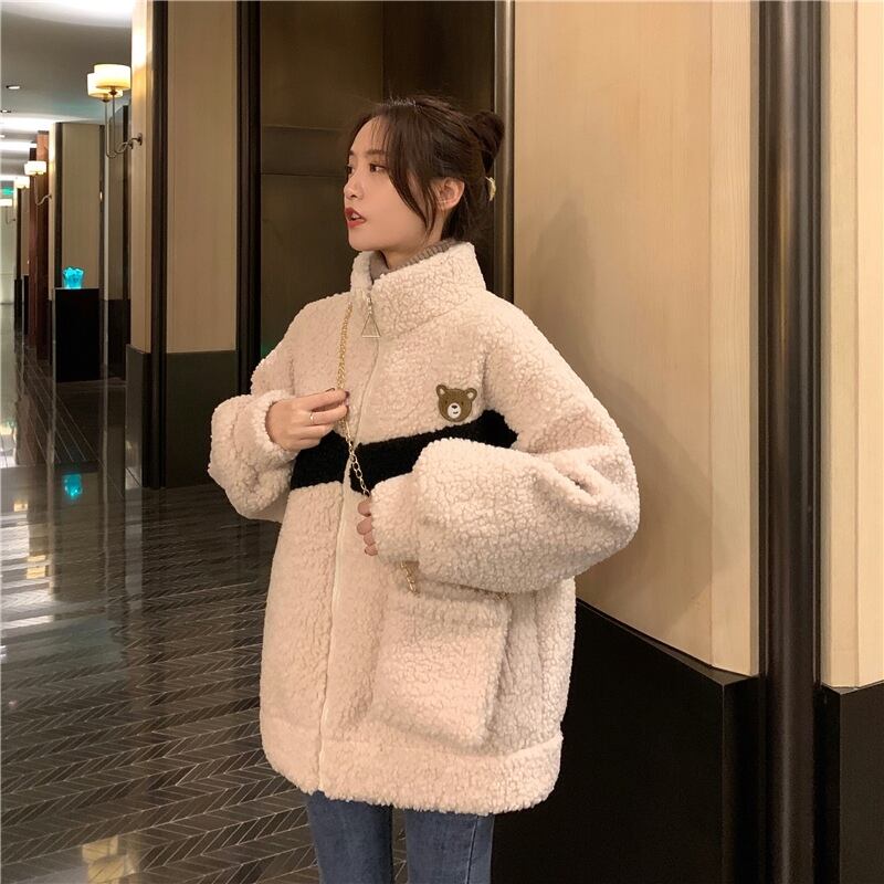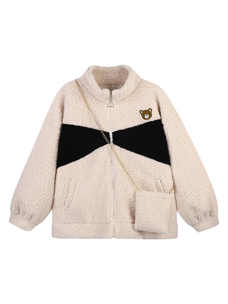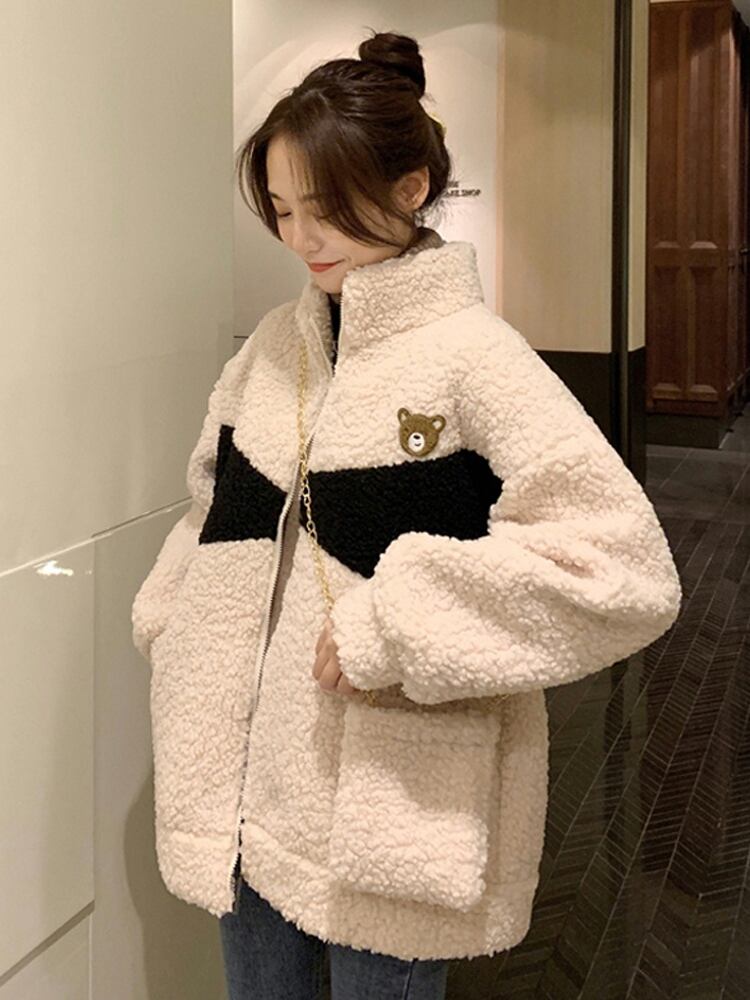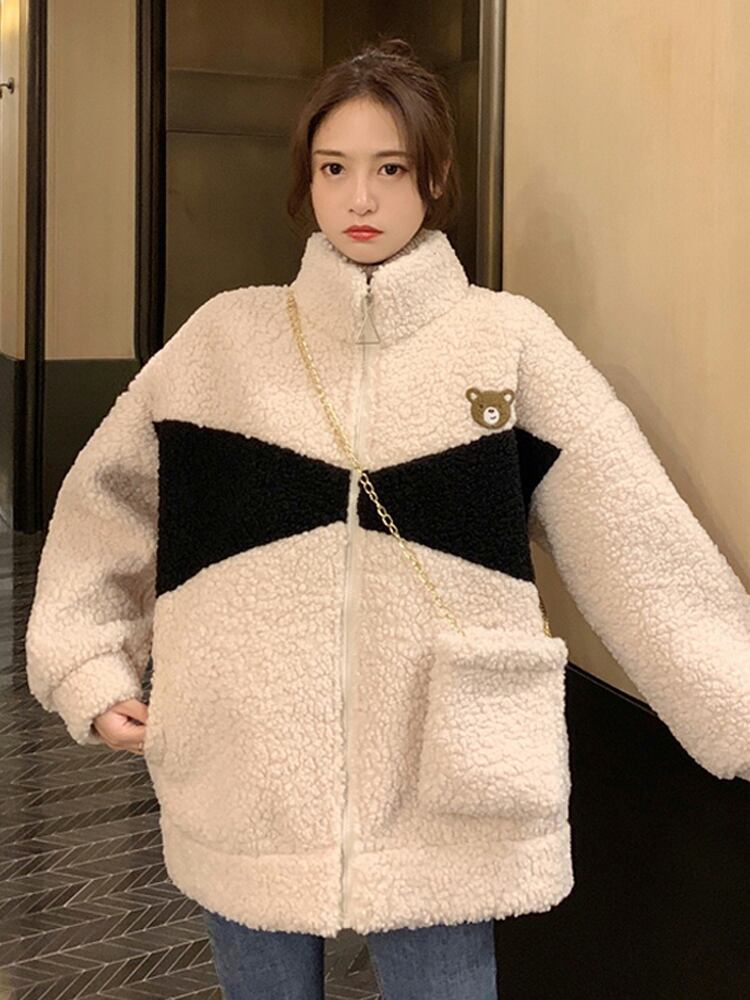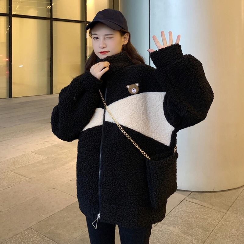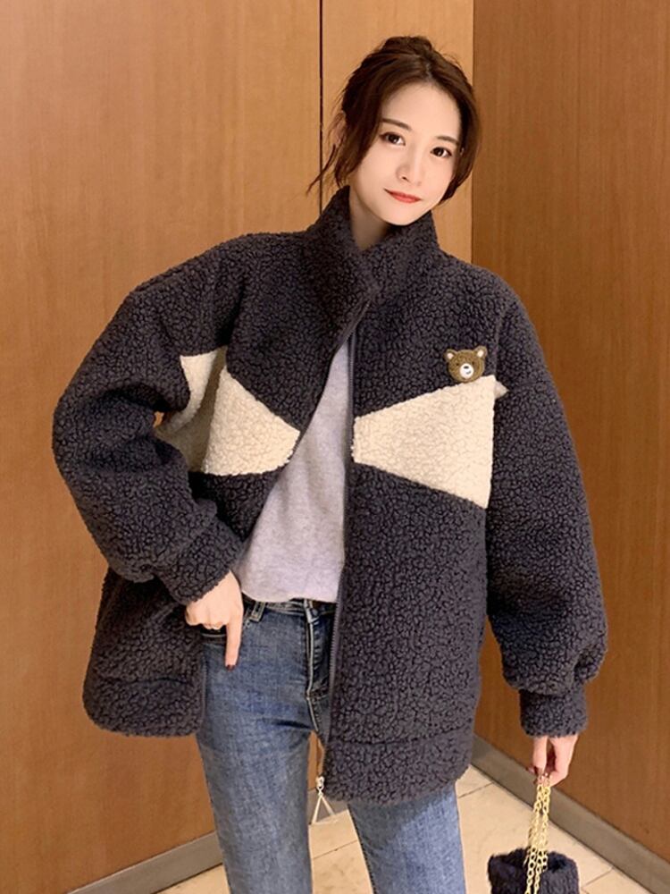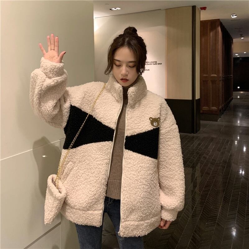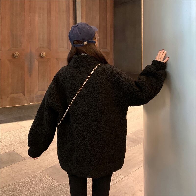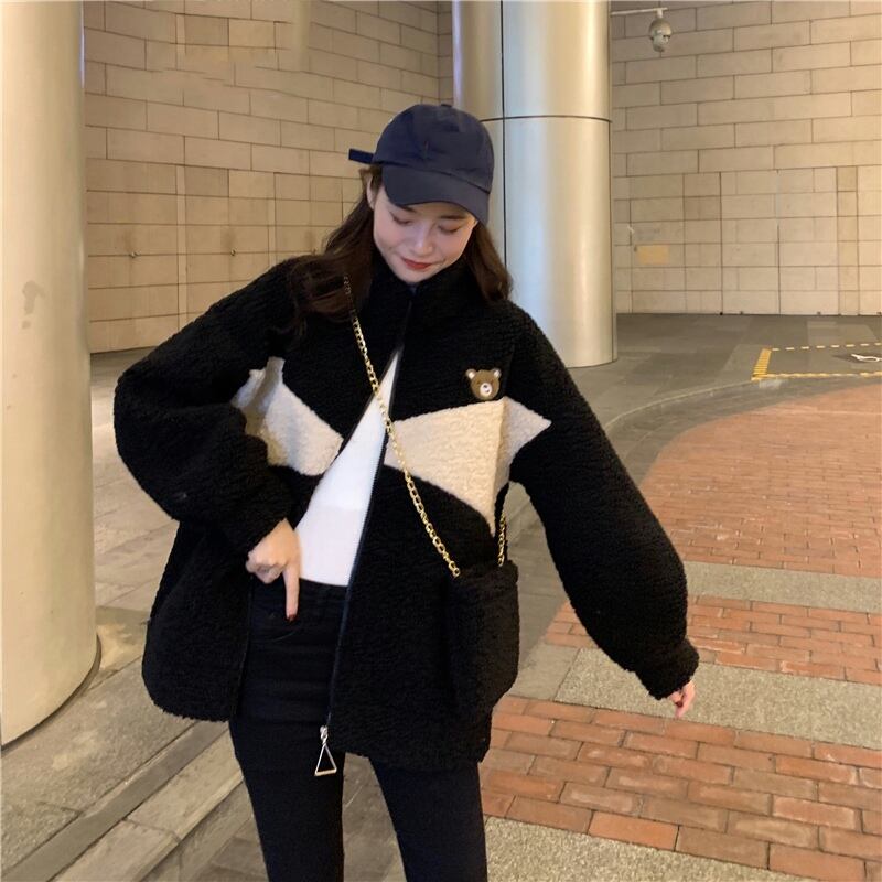 フリースジャケット 魅せる アウター 韓国流行 ブラック 黒 グレー 灰色 アプリコット レギュラー丈 袖あり 長袖 スタンドカラー ストレート ポケット ファスナー ジッパー 2点セット カジュアル レトロ レトロ風 こなれ感 ラフ ルーズ シルエット キュート ガーリー かわいい 女子 個性的 デザイン 主役級 存在感 ラブリー 柄 配色 秋 冬 10代 20代 レディース 女性用 学生 通学 デート お出かけ 女子会 着回し 普段使い 暖かい 防寒 モノトーン
