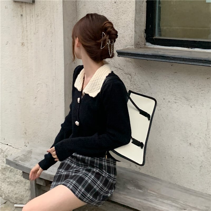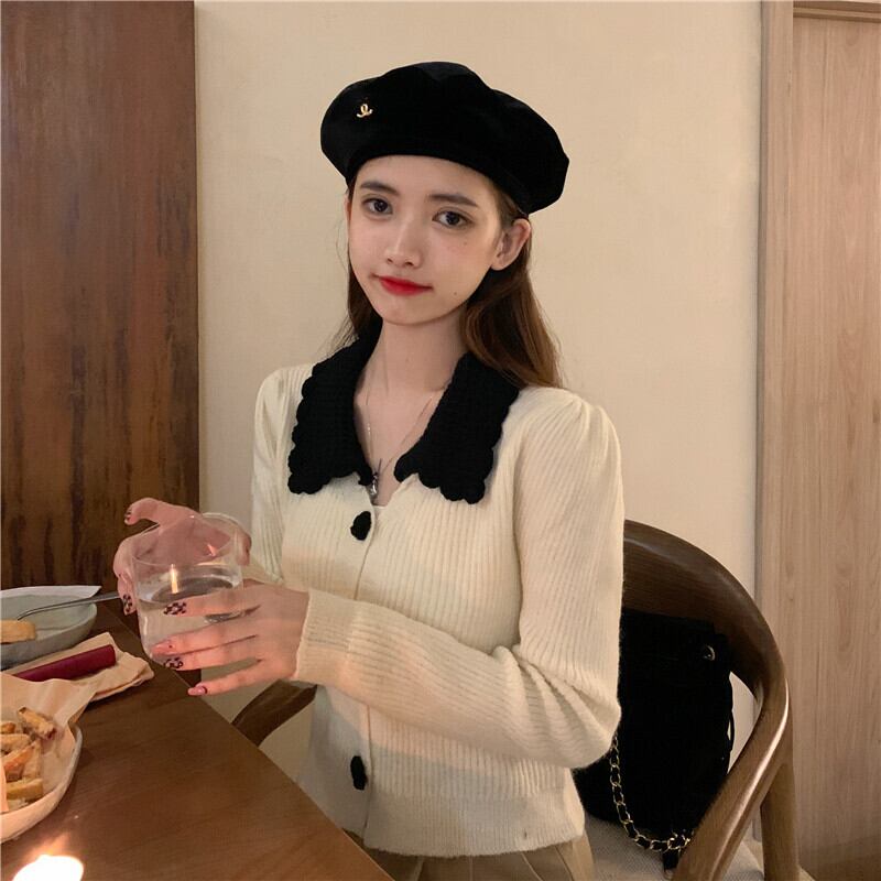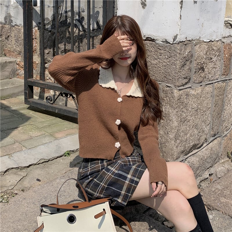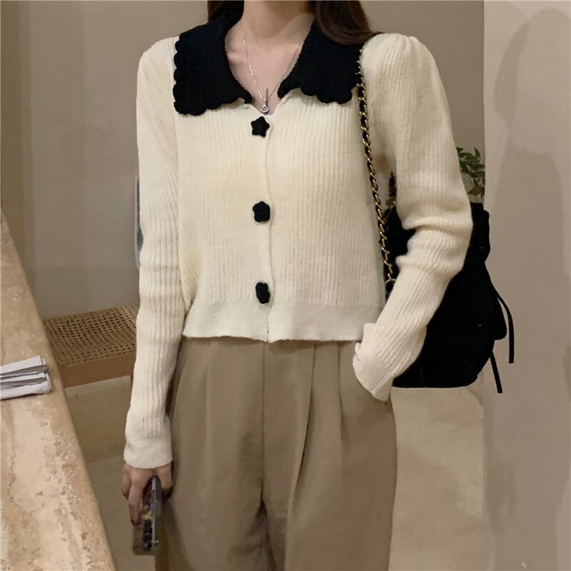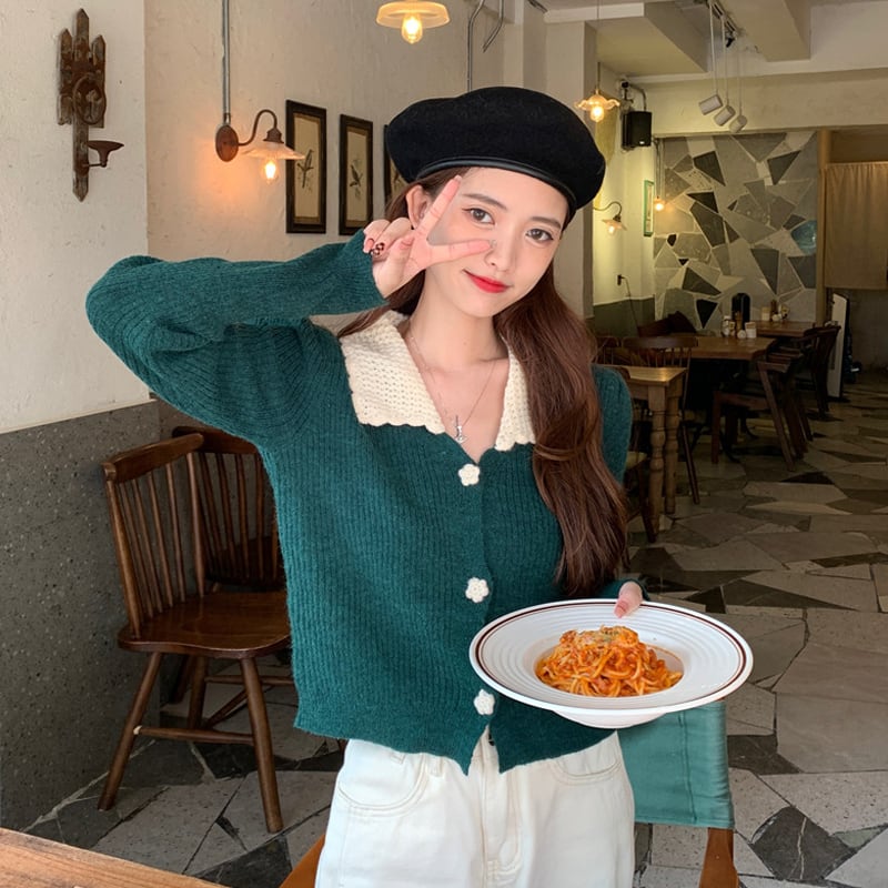 ニットカーディガン 魅せる トップス ブラック 韓国流行 黒 ブラウン 茶色 アプリコット グリーン 緑 カットソー ニットソー カーディガン レギュラー丈 袖あり 長袖 襟付き ストレート シングルブレスト ボタン 大人女子 大人 上品 おしゃれ カジュアル レトロ レトロ風 こなれ感 ラフ キュート ガーリー かわいい 女子 個性的 デザイン 主役級 存在感 無地 配色 春 スプリング 秋 オータム 10代 20代 レディース 女性用 学生 通学 着回し 普段使い ワンサイズ