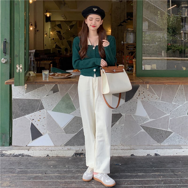 韓国流行の大人女子におすすめのニットカーディガン!豊富な7色展開で、自分好みの配色でお楽しみいただけます。レギュラー丈のストレートシルエットで、シンプルでありながら存在感抜群の一枚。襟付きで、オフィスやデートでもおしゃれな印象に。長袖なので、肌寒い春や秋にも一枚で活躍します。スタイリングにも自在で、カジュアルからガーリーまで、様々なテイストにマッチします。