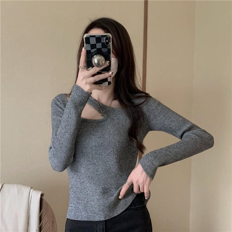 カットソー 魅せる トップス ブラック 黒 ホワイト 韓国ファッション 白 グレー 灰色 ピンク レギュラー丈 袖あり 長袖 くり抜き スリム 細身 カットアウト くりぬき 大人女子 大人 上品 おしゃれ かっこいい クール カジュアル レトロ レトロ風 こなれ感 ラフ 個性的 デザイン 主役級 存在感 ストリート 無地 秋 冬 10代 20代 レディース 女性用 学生 通学 デート お出かけ 女子会 イベント リゾート 旅行 着回し 普段使い トレンド ファッション コーデ ワンサイズ M