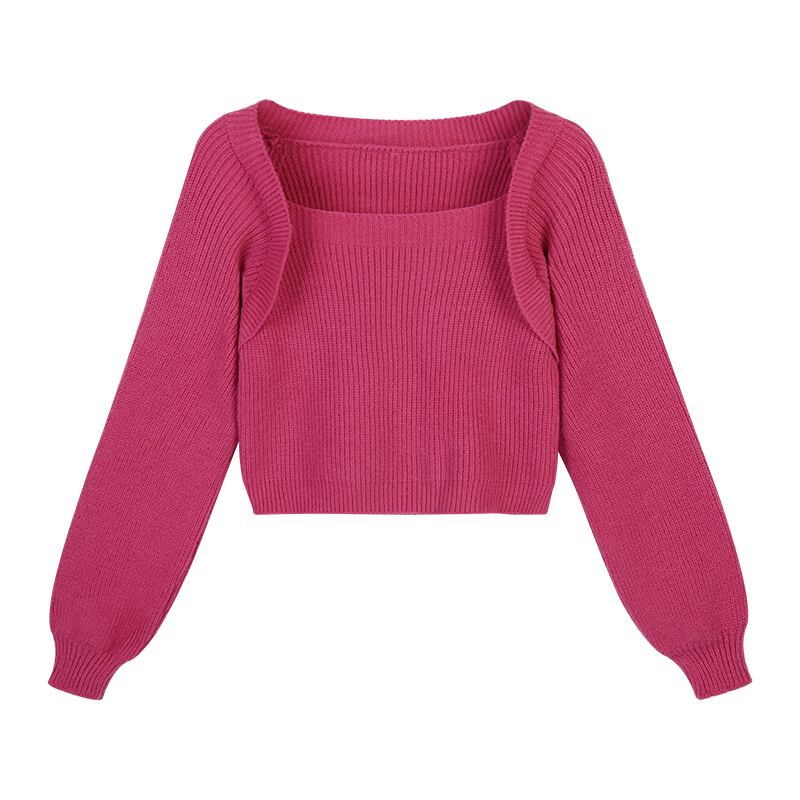 ニット セーター 魅せる トップスです。シンプルながらも、トップスのデザインが一目で印象に残る1着。黒とローズの2色からお選びいただけます。ショート丈で袖もあるので、体型カバーにも最適です。スクエアネックでフェミニンな雰囲気を出し、キュートでガーリーな印象に仕上がっています。シルエットはストレートで、大人の女性にぴったりです。オフィスカジュアルに、きれいめなコーデに、カジュアルなデイリーコーデに、どんなシーンでも活躍する主役級の存在感があります。この一枚で、あなたのおしゃれ度も劇的にUPすること間違いなしです。春から秋までの季節に合わせて着用でき、着回しもしやすいアイテムです。大人女子にオススメの、こなれ感あふれるスタイルを手軽に演出してみてください。