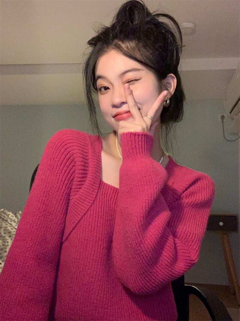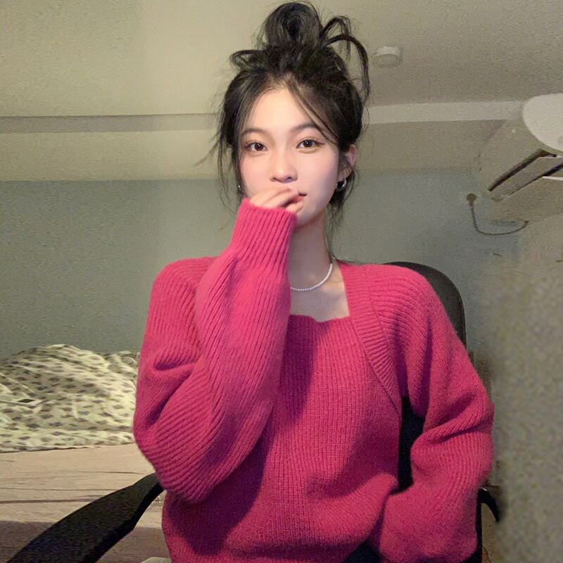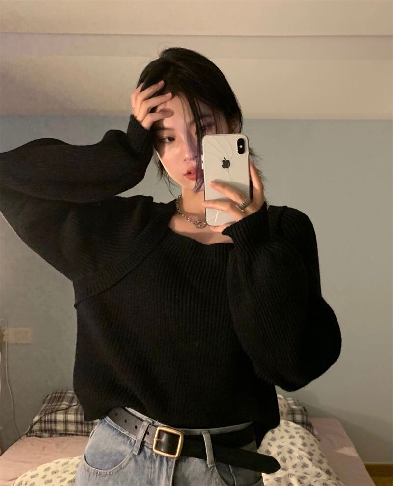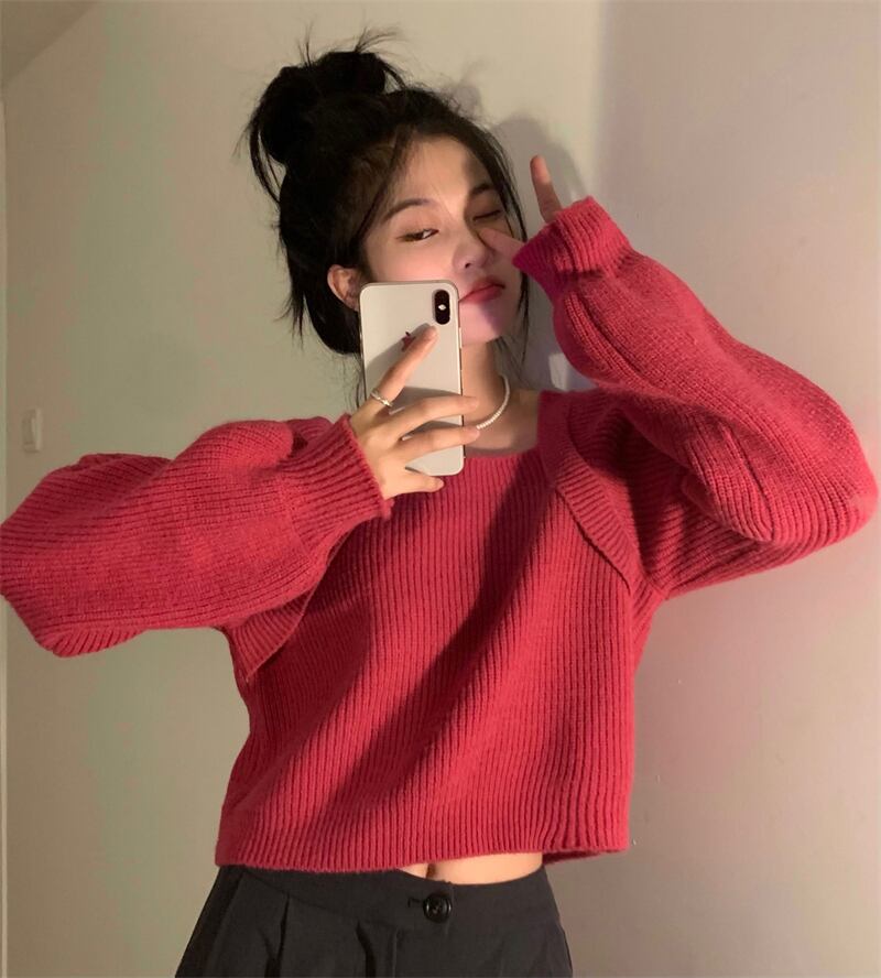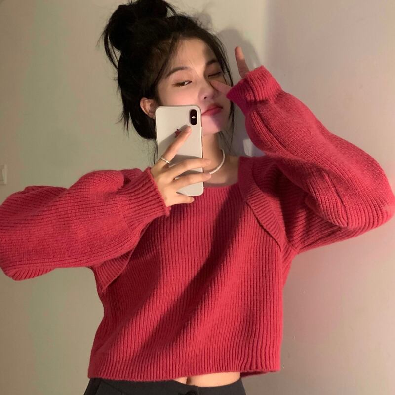 ニット セーター 魅せる トップス ニットソー 韓国ファッション ブラック 黒 ローズ ショート丈 袖あり 長袖 スクエアネック ストレート 大人女子 大人 上品 おしゃれ きれいめ シンプル カジュアル エレガント レトロ レトロ風 こなれ感 ラフ ルーズ シルエット キュート ガーリー かわいい 女子 個性的 デザイン 主役級 存在感 無地 春 スプリング 秋 オータム 10代 20代 レディース 女性用 学生 通学 デート お出かけ 女子会 着回し 普段使い ワンサイズ