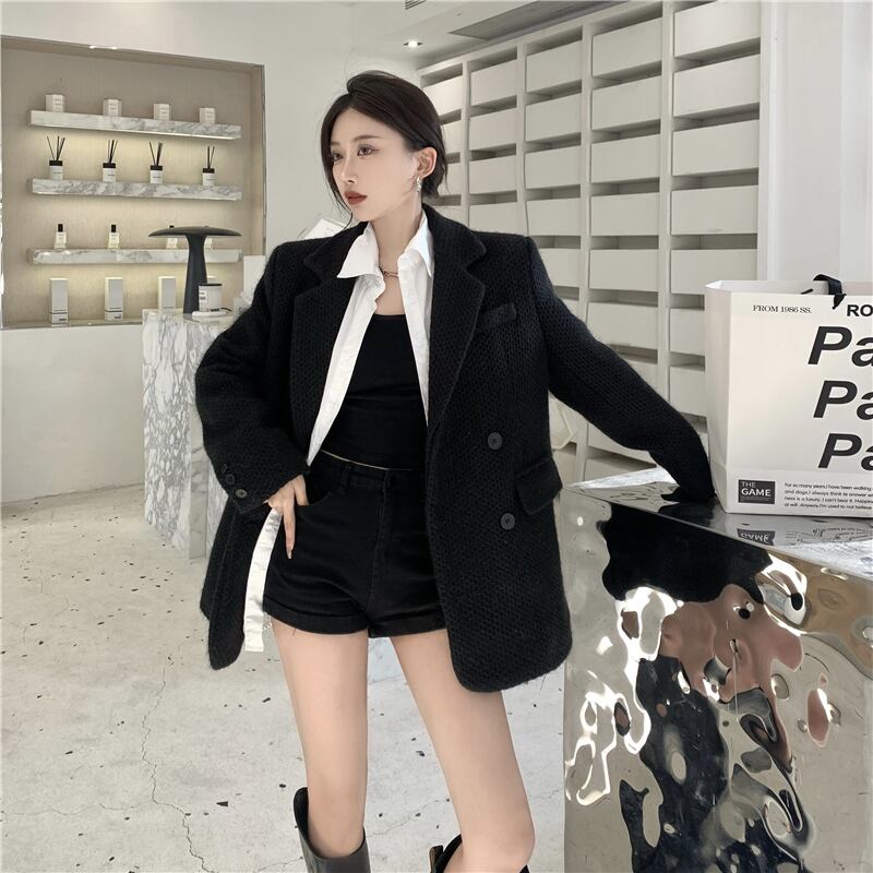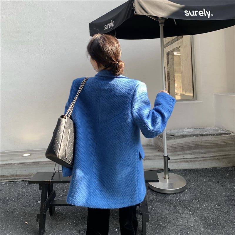 ジャケット トップス アウター ブルー 青 ブラック 黒 ジャケット 上着 スーツ ミディアム丈 長袖 襟付き ストレート ポケット 綿 大人可愛い きれいめ シンプル 大人 上品 おしゃれ お洒落 かっこいい 大人女子 こなれ感 フォーマル 無地 春 秋 入学式 入園式 卒業式 卒園式 謝恩会 10代 20代 30代 レディース ママ オフィス ビジネス OL 通勤 お出かけ 普段使い スタイル 合わせやすい 好感度 大人カラー カラバリ