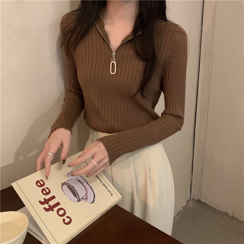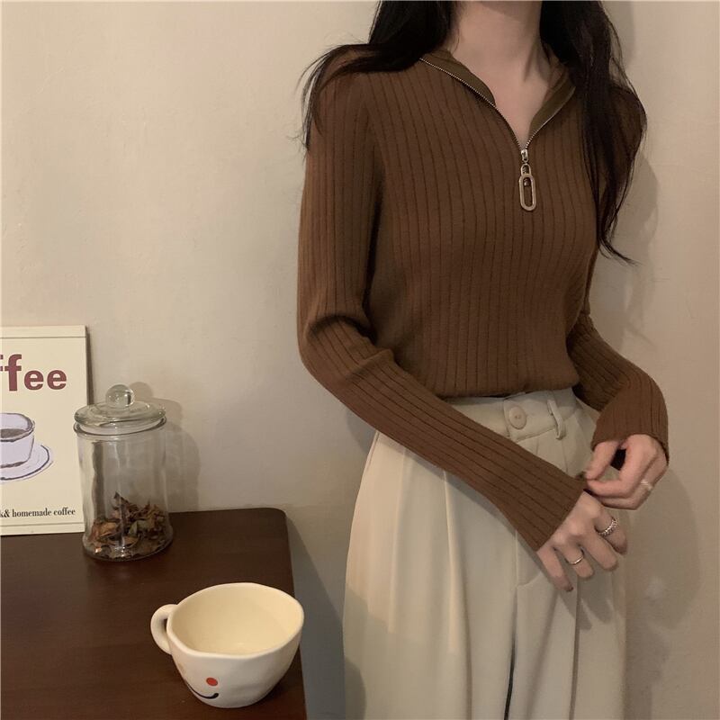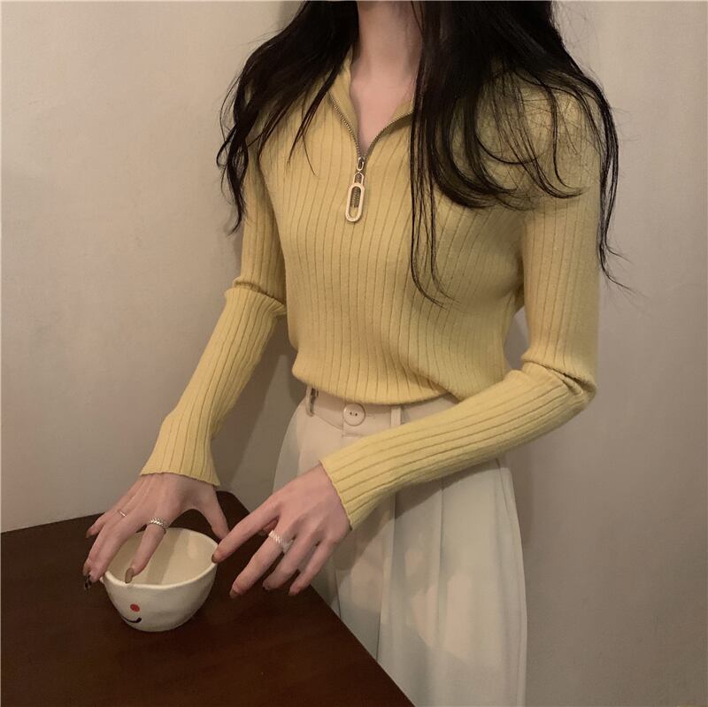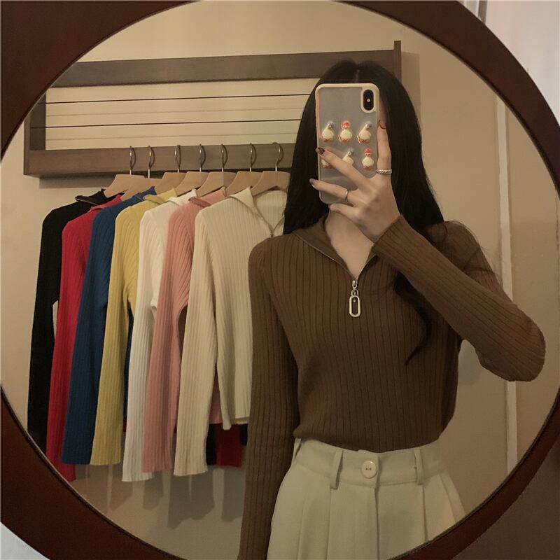 Vネック タイト ニット ファスナー アプリコット 韓国流行 レッド 赤 ブルー 青 イエロー 黄色 ブラック 黒 ブラウン 茶色 コーヒー トップス 袖あり 長袖 襟なし スリム 細身 かわいい 大人可愛い きれいめ シンプル カジュアル 大人 上品 おしゃれ お洒落 大人女子 こなれ感 セクシー エレガント 主役級 存在感 春 秋 冬 2021 レディース 女性用 学生 デート お出かけ 女子会 イベント 旅行 着回し 普段使い 韓国系 モテ トレンド 流行 インスタ映え おすすめ インポート
