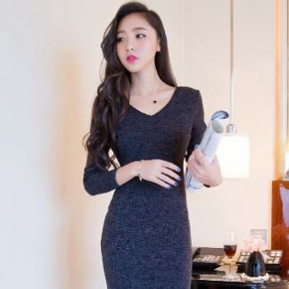 長袖Vネックニットワンピース