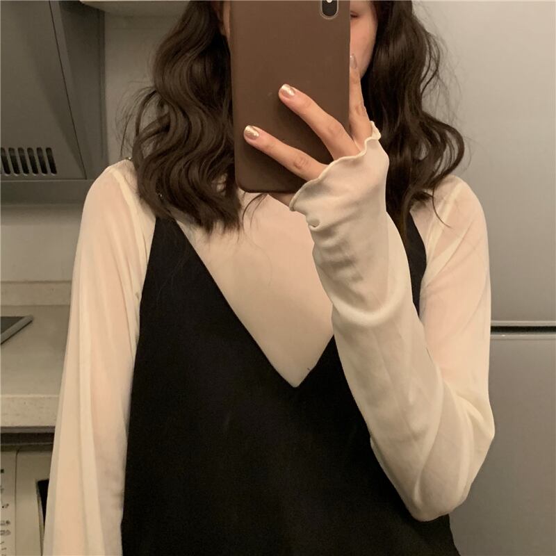 シフォンシャツ 魅せる トップス 韓国流行 シャツ カットソー アプリコット レギュラー丈 袖あり 長袖 ハイネック スリム ストレート 透け感 シースルー 大人女子 大人 上品 おしゃれ きれいめ シンプル モード系 エレガント レトロ レトロ風 こなれ感 ラフ キュート ガーリー かわいい 女子 個性的 デザイン 主役級 存在感 無地 秋 オータム 10代 20代 30代 レディース 女性用 学生 通学 デート お出かけ 女子会 着回し 普段使い ワンサイズ