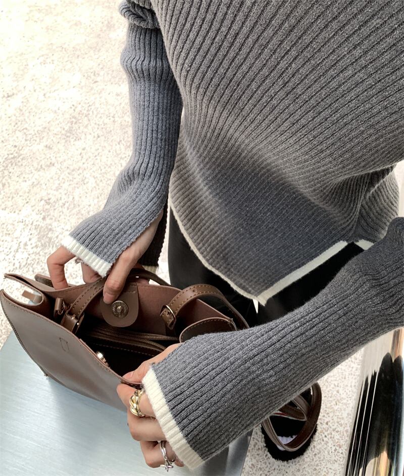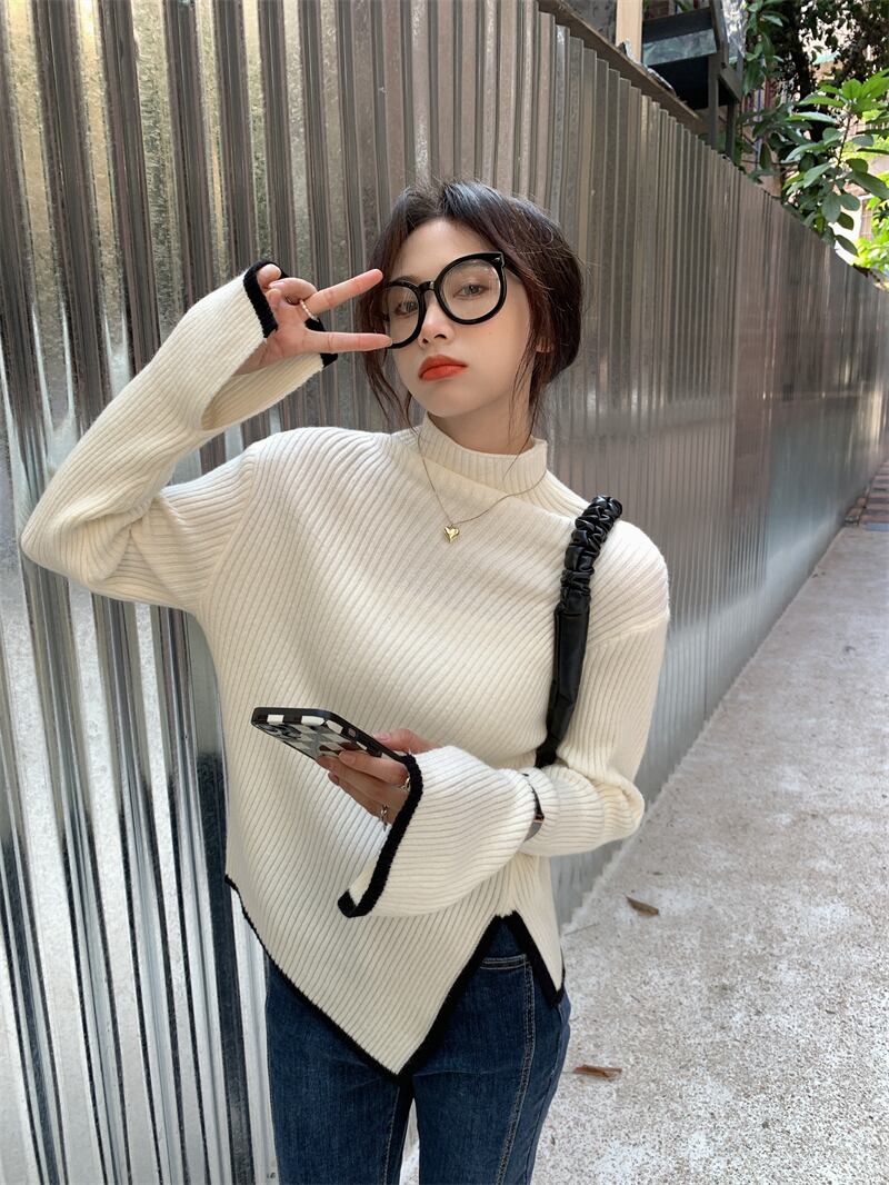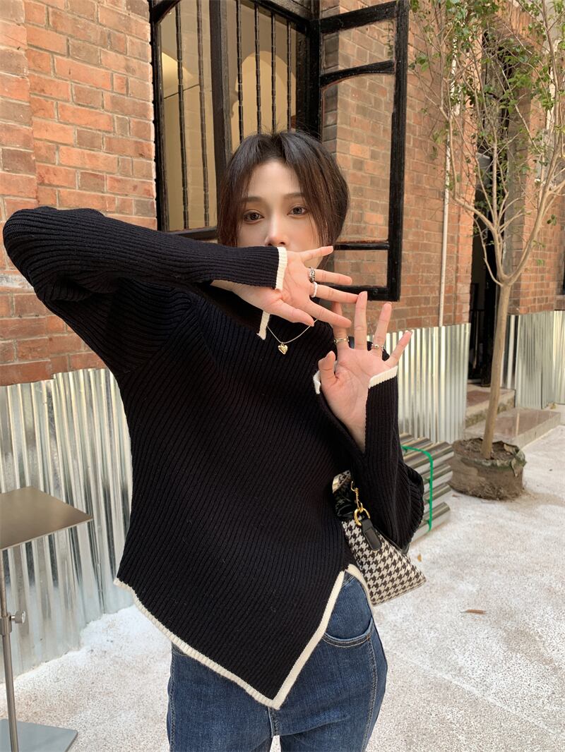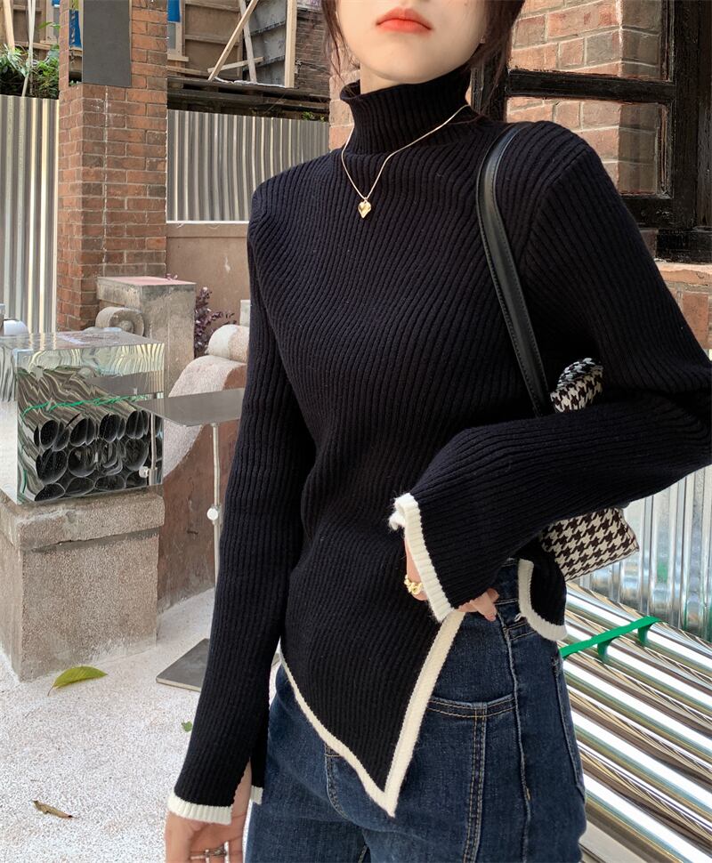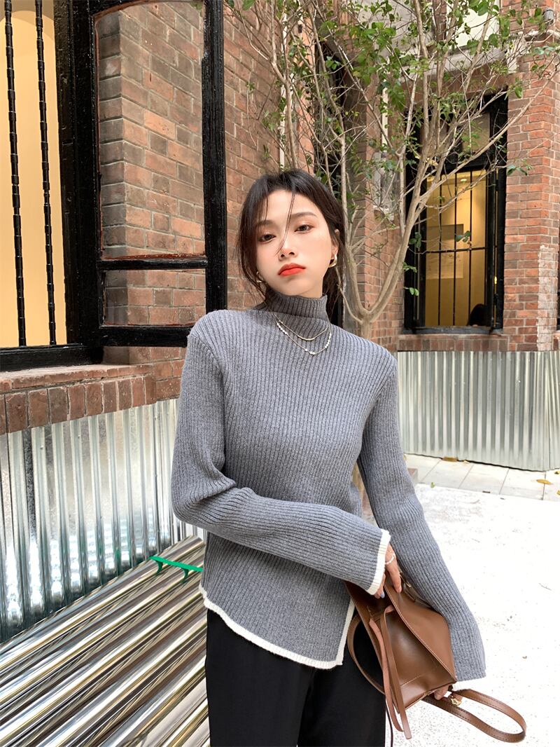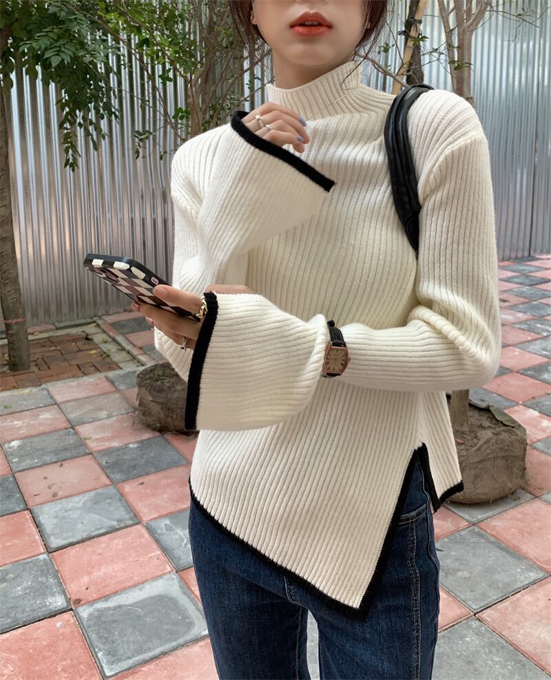 カットソー 技あり トップス ニットソー ブラック 韓国流行 黒 ホワイト 白 グレー 灰色 レギュラー丈 袖あり 長袖 ハイネック スリム ストレート アシンメトリー スリット 大人女子 大人 上品 おしゃれ かっこいい クール モード系 カジュアル レトロ レトロ風 こなれ感 ラフ 個性的 デザイン 主役級 存在感 無地 配色 秋 冬 10代 20代 30代 レディース 女性用 学生 通学 デート お出かけ 女子会 着回し 普段使い ワンサイズ モノトーン バイカラー ツートーンカラー