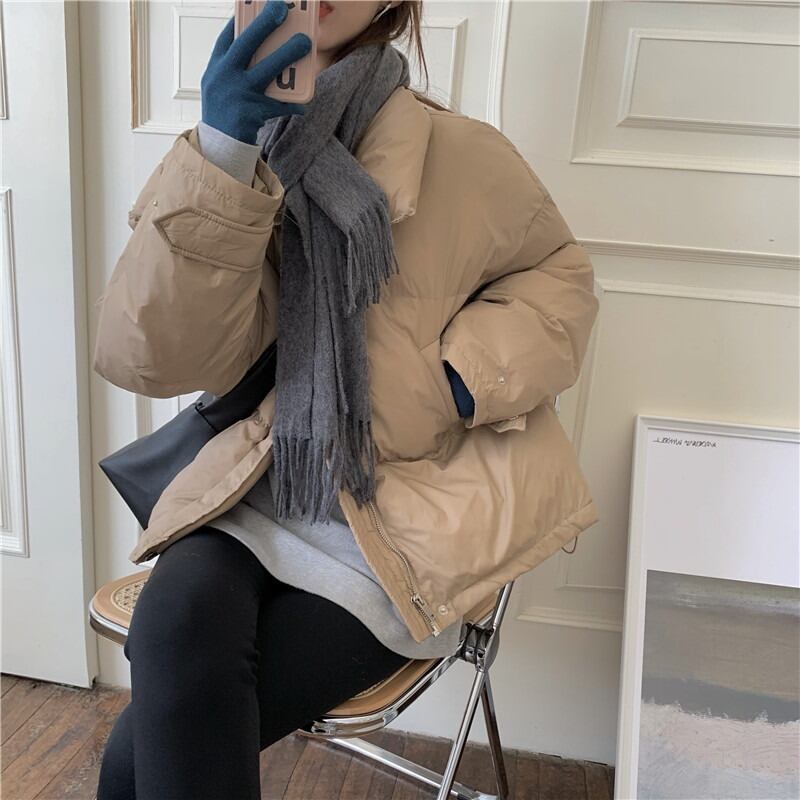中綿入りジャケット シンプル アウター コート 韓国流行 ジャケット ブラック 黒 カーキ ショート丈 袖あり 長袖 襟付き ストレート シングルブレスト ポケット ファスナー ジッパー 綿 コットン 大人女子 大人 上品 おしゃれ カジュアル レトロ レトロ風 こなれ感 ラフ ルーズ シルエット 個性的 デザイン 主役級 存在感 スポーティー 無地 冬 ウインター 10代 20代 30代 40代 レディース 女性用 通勤 学生 通学 着回し 普段使い 暖かい 防寒 ワンサイズ 大人カラー