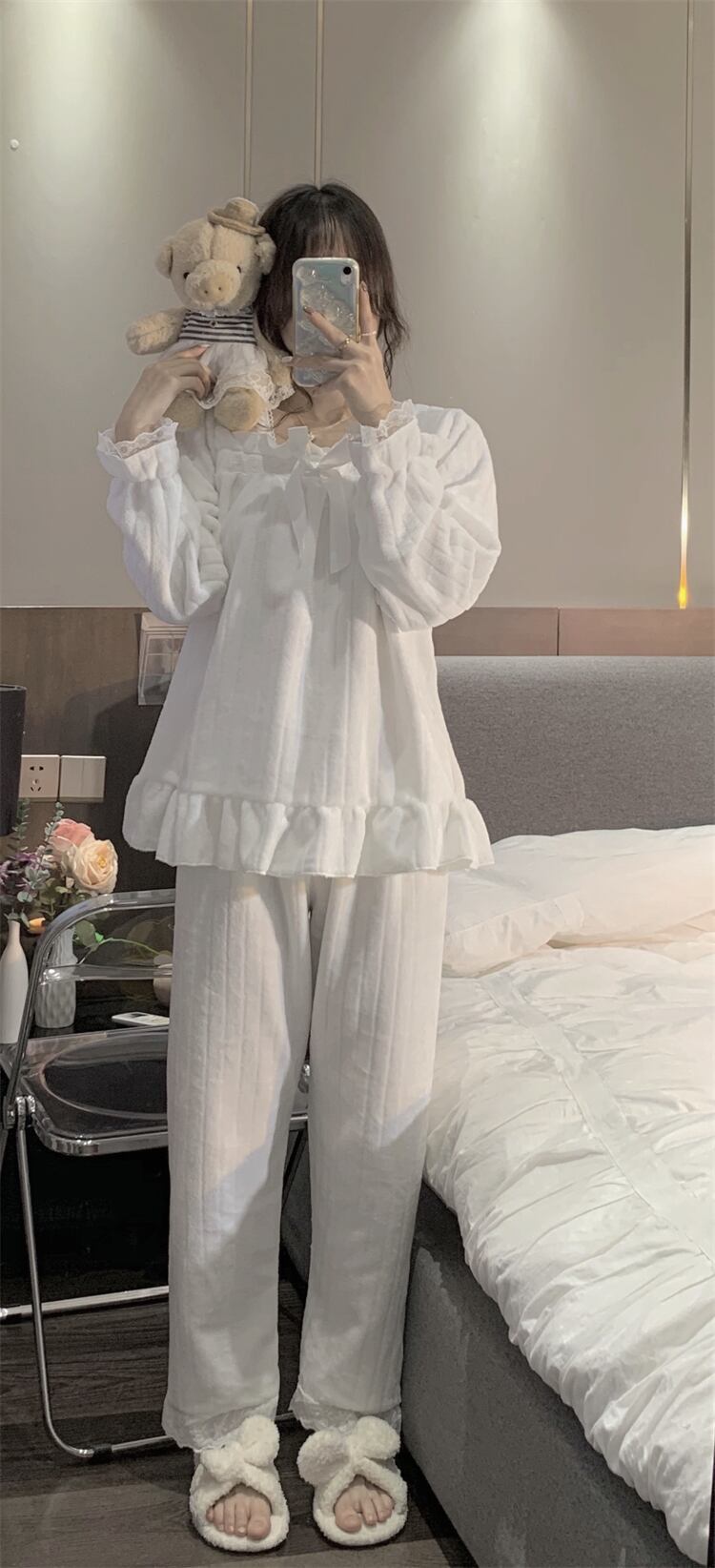 リボン フリル レース パジャマ 部屋着 秋新作レディース ホワイト 白 ルームウェア 上下セット 長袖 スクエアネック ゆるふわ ゆめかわ かわいい 大人可愛い きれいめ シンプル カジュアル 大人 上品 おしゃれ お洒落 大人女子 こなれ感 キュート ガーリー 主役級 存在感 春 秋 冬 2021 レディース 女性用 女子会 イベント 旅行 合宿 お泊まり お揃い おそろい 韓国系 モテ トレンド 流行 インスタ映え おすすめ インポート ギフト プレゼント 誕生日 バースデー 母の日 M L