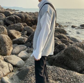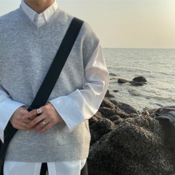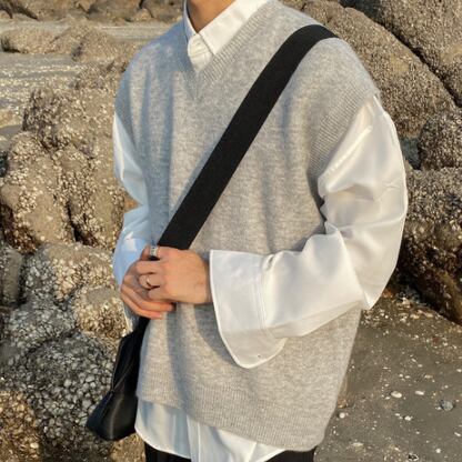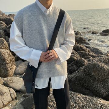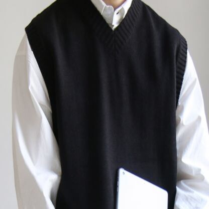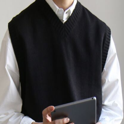 Vネックベスト シンプル ベスト ブラック 黒 グレー 韓国ファッション 灰色 ネイビー 紺 レギュラー丈 袖なし ノースリーブ Vネック ストレート 綿 コットン かっこいい クール カジュアル レトロ レトロ風 こなれ感 ラフ ルーズ シルエット 主役級 存在感 無地 春 スプリング 秋 オータム 10代 20代 30代 メンズ 男性用 オフィス ビジネス OL 通勤 学生 通学 着回し 普段使い トレンド ファッション コーデ 暖かい 防寒 定番 スタイル 大きいサイズ M L XL 2XL