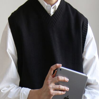 シンプルで主役級の存在感があるVネックベスト。レギュラー丈で袖のないデザインが、どんなスタイルにも相性抜群です。ノースリーブなので、オフィスカジュアルはもちろん、ビーチリゾートや旅行、普段のカジュアルな着こなしでも活躍してくれます。また、無地であるため、コーディネートしやすく、ファッションに敏感な10代から30代の男性にもおすすめです。