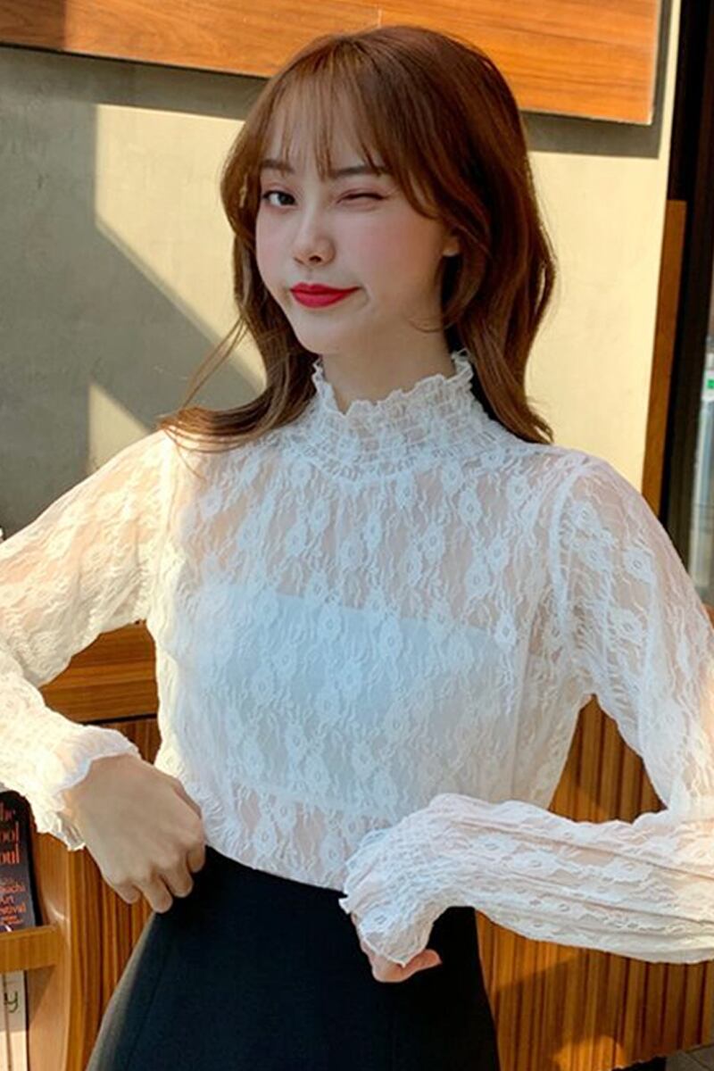 タートルネックレースシャツ