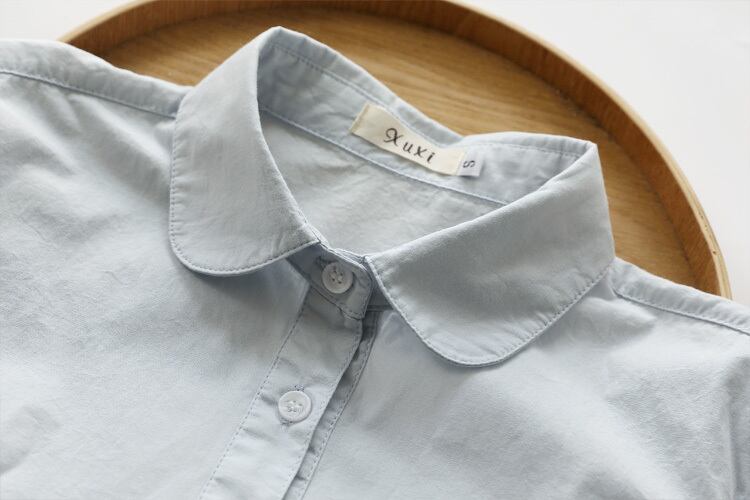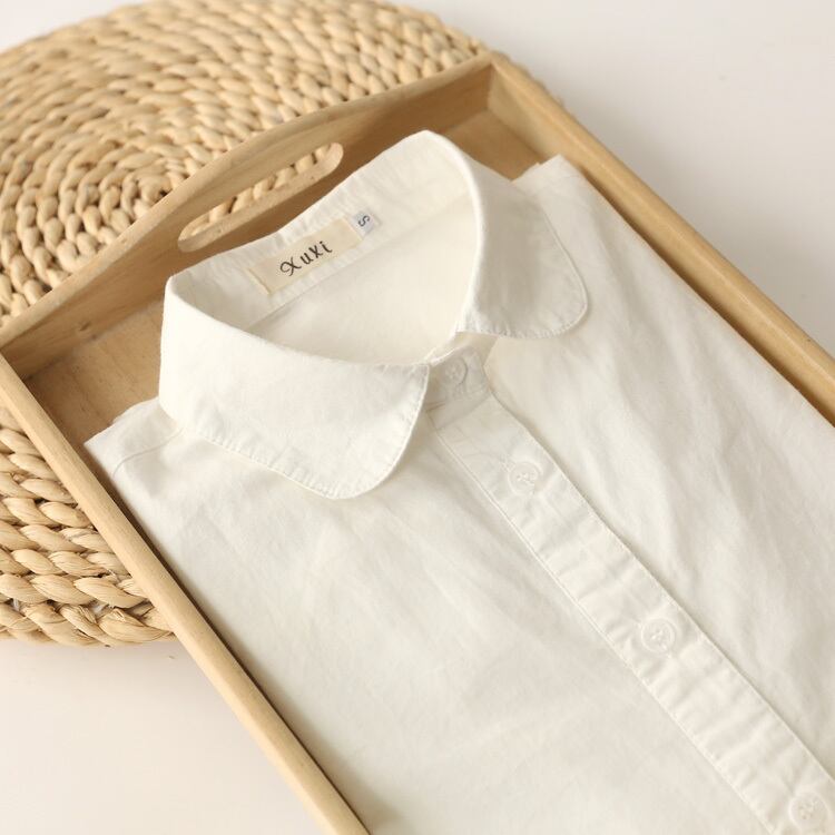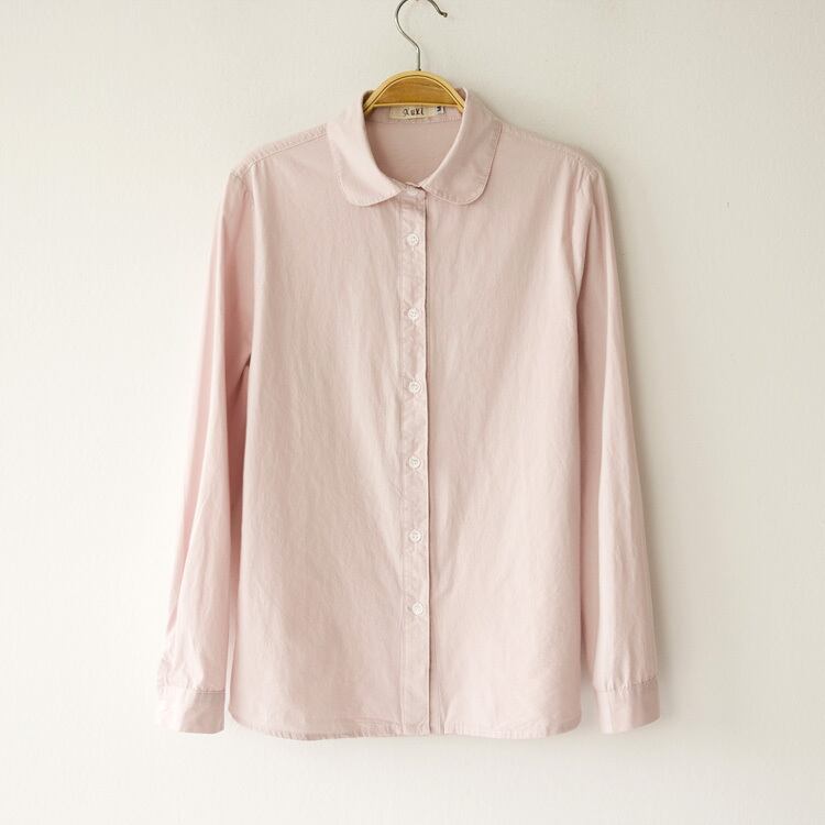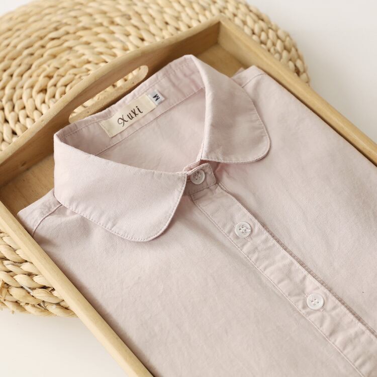 コットンシャツ ドールカラー シンプル トップス シャツ ホワイト 白 ブルー 青 ピンク レギュラー丈 袖あり 長袖 襟付き 細身 ストレート シングルブレスト ボタン 綿 コットン 大人女子 大人 上品 おしゃれ カジュアル レトロ レトロ風 こなれ感 ラフ ラブリー 無地 春 スプリング 秋 オータム 10代 20代 30代 40代 レディース 女性用 ママ オフィス ビジネス OL 通勤 着回し 普段使い S M L XL 2XL 大きいサイズ 春カラー