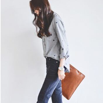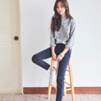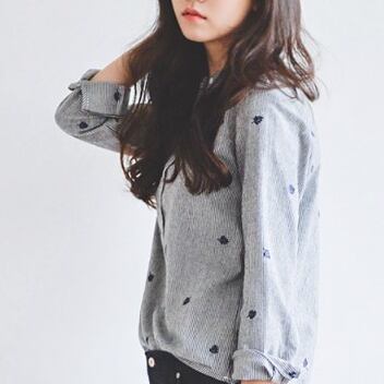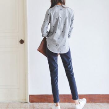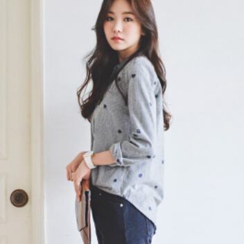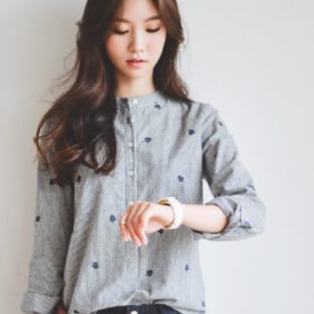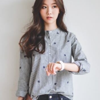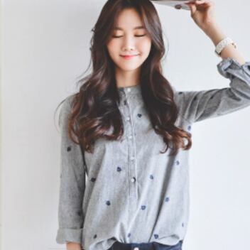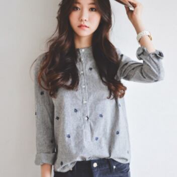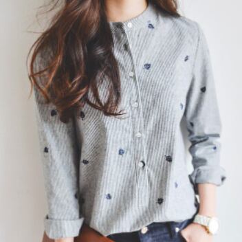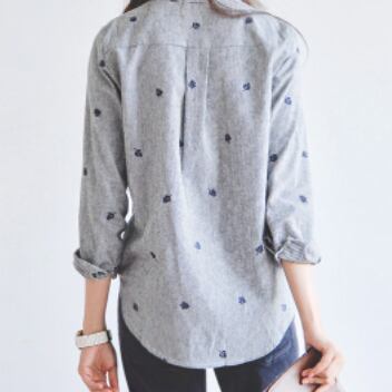 小さな刺繍が目を引くレトロかわいい長袖シャツ