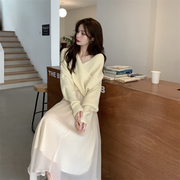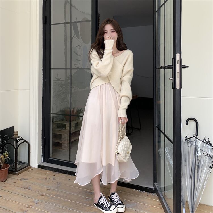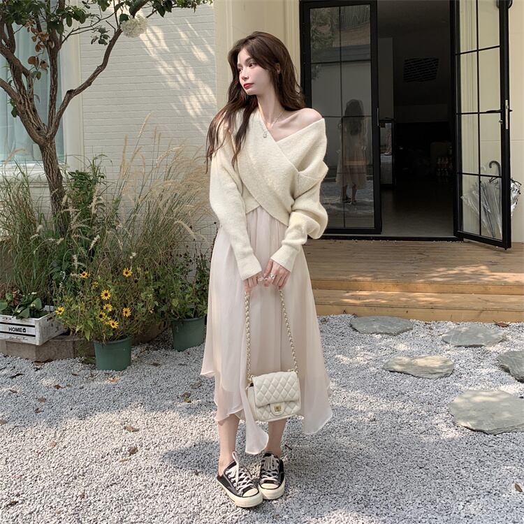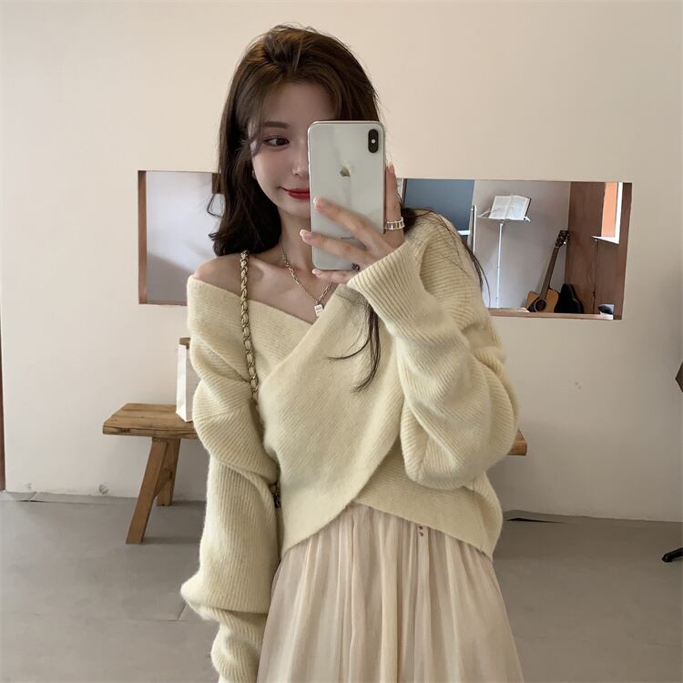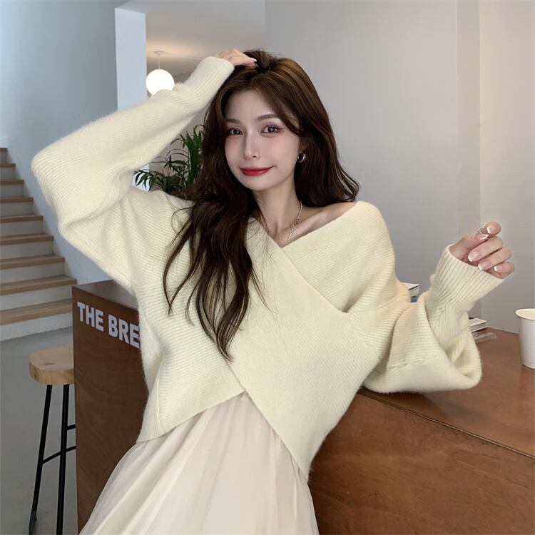 ニット セーター 魅せる トップス ショート丈 韓国ファッション 袖あり 長袖 ボリューム袖 Vネック カシュクール 大人女子 大人 上品 おしゃれ カジュアル エレガント レトロ レトロ風 こなれ感 ラフ ルーズ シルエット 個性的 デザイン 主役級 存在感 無地 秋 オータム 冬 ウインター 10代 20代 30代 レディース 女性用 学生 通学 デート お出かけ 女子会 イベント リゾート 旅行 着回し 普段使い 重ね着 トレンド ファッション コーデ スタイル ワンサイズ
