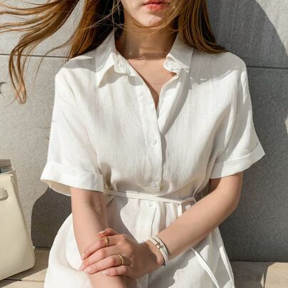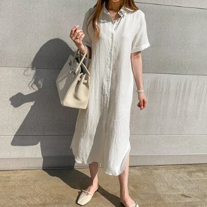 シャツワンピース トップス ワンピ シンプル ホワイト 白 カーキ ミディアム丈 袖あり 半袖 Vネック 襟付き ストレート 人気シャツ デザイン良い 大人女子 大人 上品 おしゃれ きれいめ シンプル デイリーウェア レトロ レトロ風 こなれ感 ラフ ルーズ シルエット 主役級 存在感 無地 春 夏 10代 20代 30代 40代 レディース 女性用 ママ オフィス ビジネス OL 学生 通学 デート お出かけ 女子会 休日 おうち 着回し 普段使い トレンド M L XL 人気 ビッグサイズ ゆるかわ