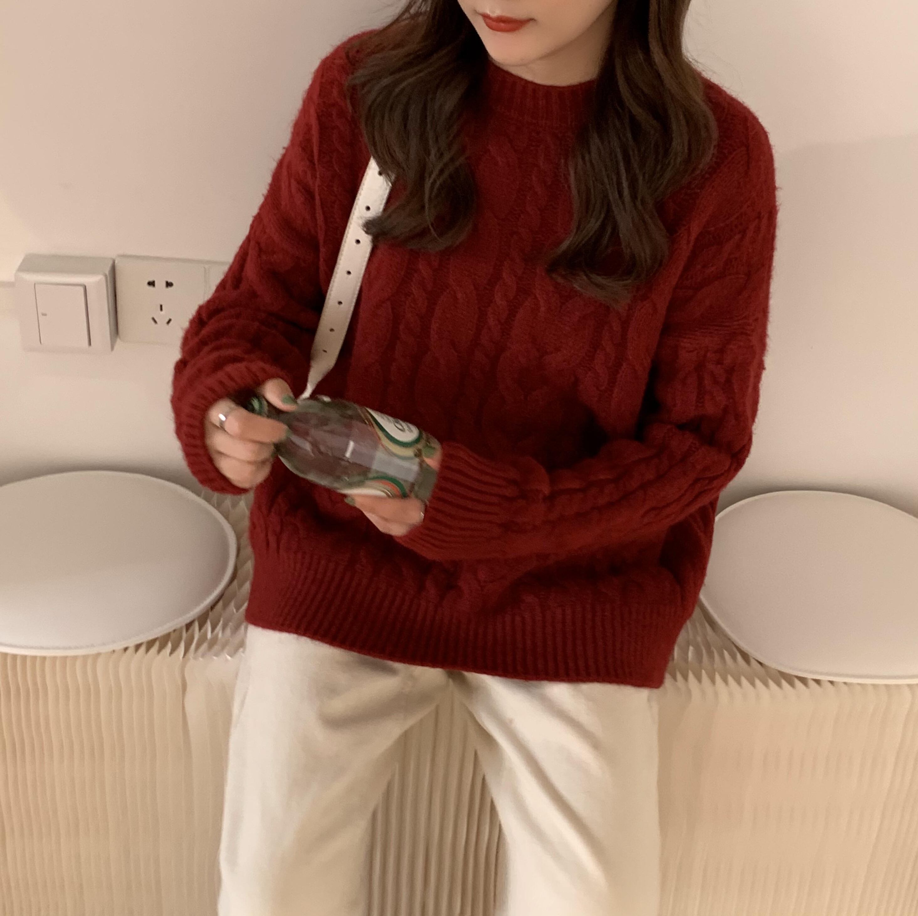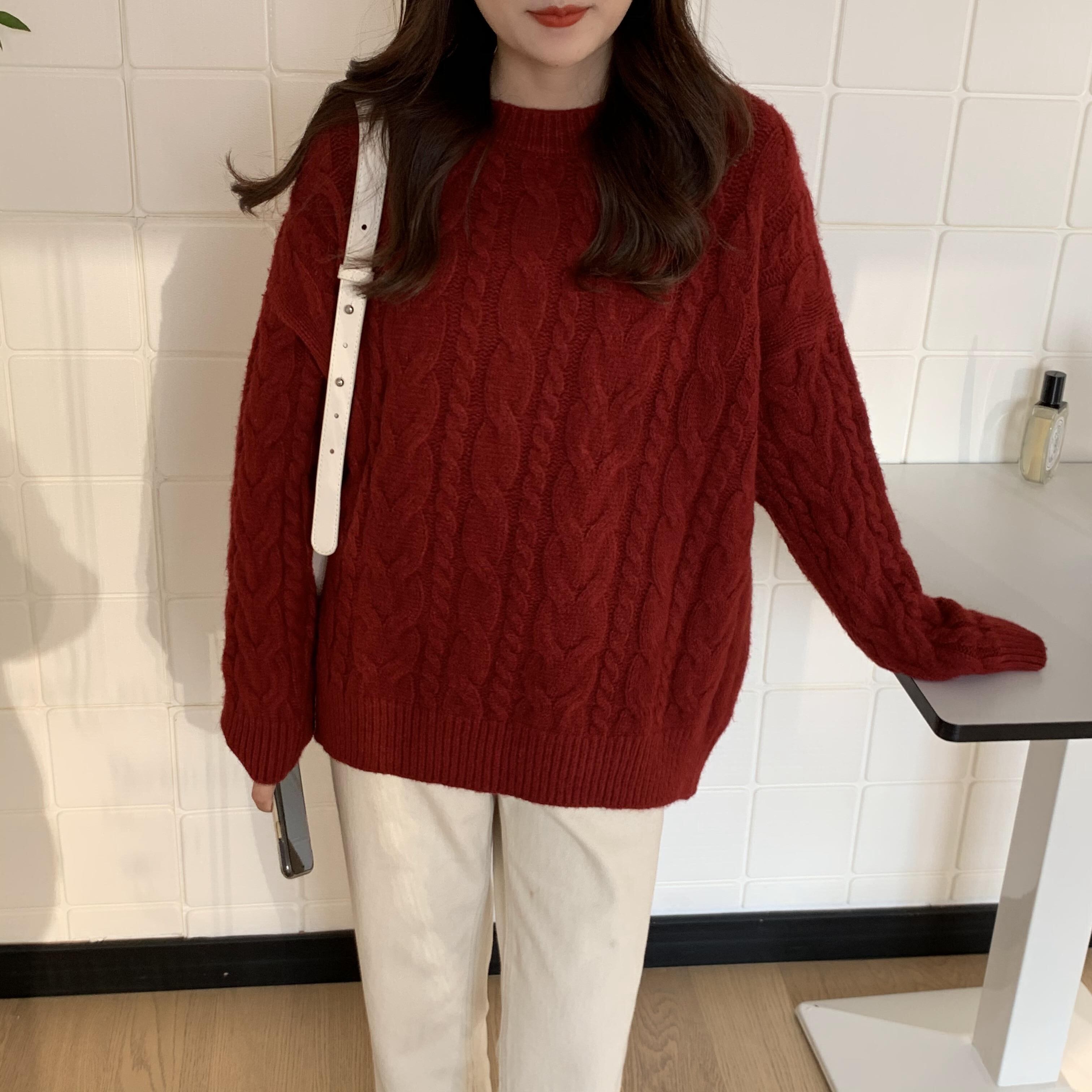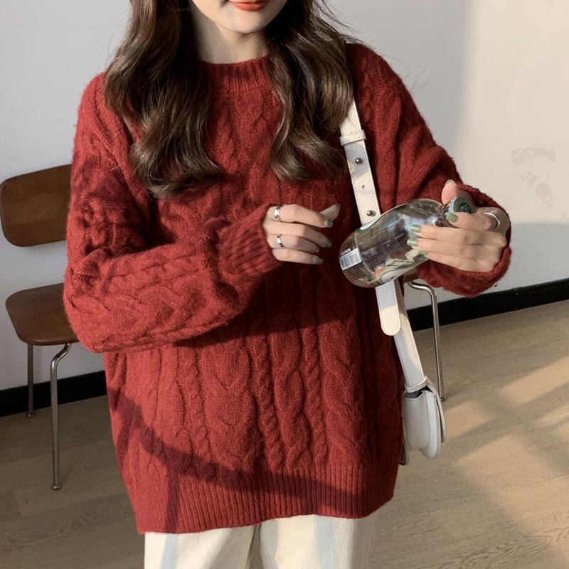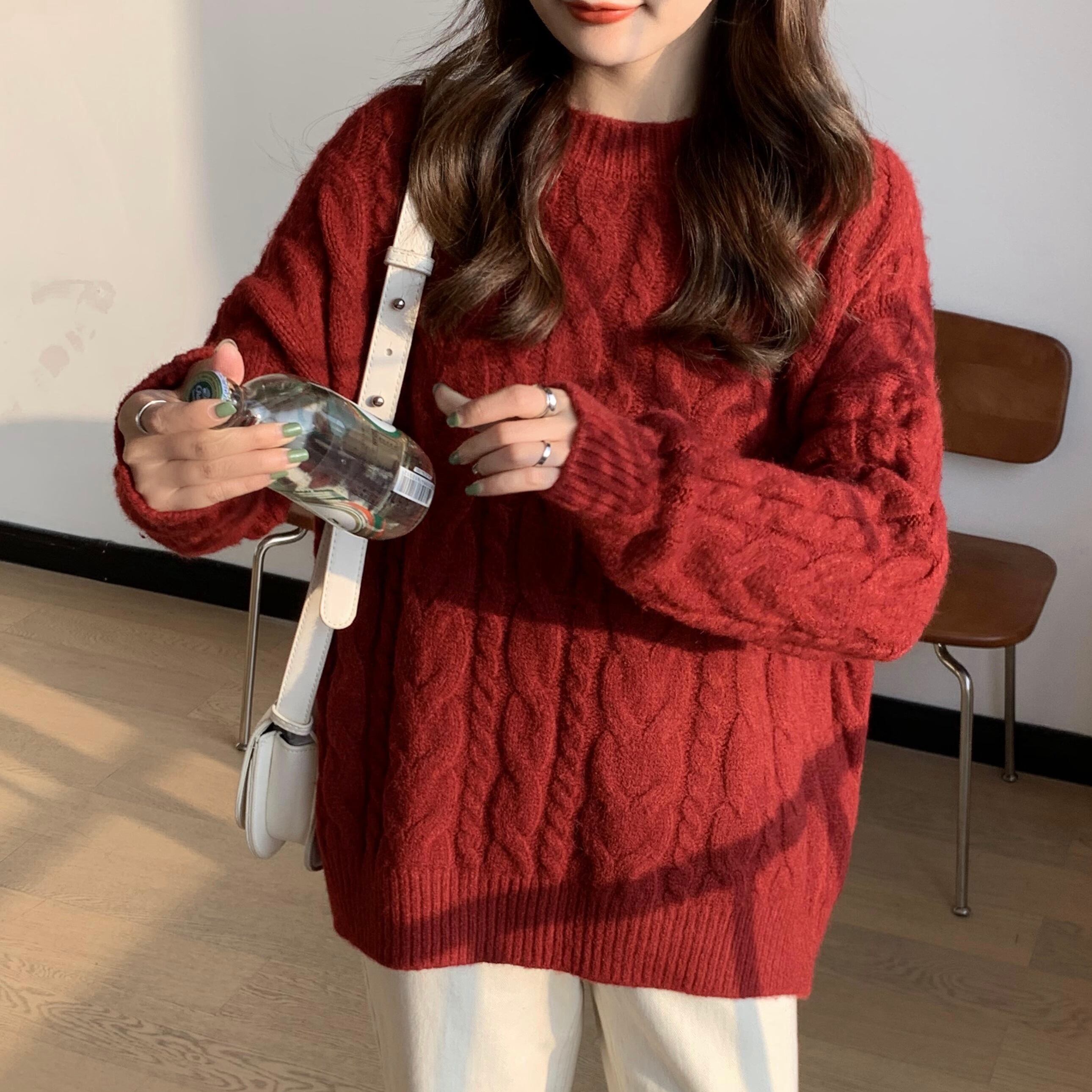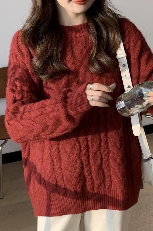 ニット セーター シンプル トップス プルオーバー 秋新作レディース アプリコット レッド 赤 レギュラー丈 袖あり 長袖 ラウンドネック ストレート 大人女子 大人 上品 おしゃれ カジュアル レトロ レトロ風 こなれ感 ラフ ルーズ シルエット 主役級 存在感 無地 秋 冬 10代 20代 30代 40代 レディース 女性用 オフィス ビジネス OL 通勤 学生 通学 休日 おうち 着回し 普段使い トレンド ファッション コーデ 暖かい 防寒 定番 スタイル ワンサイズ