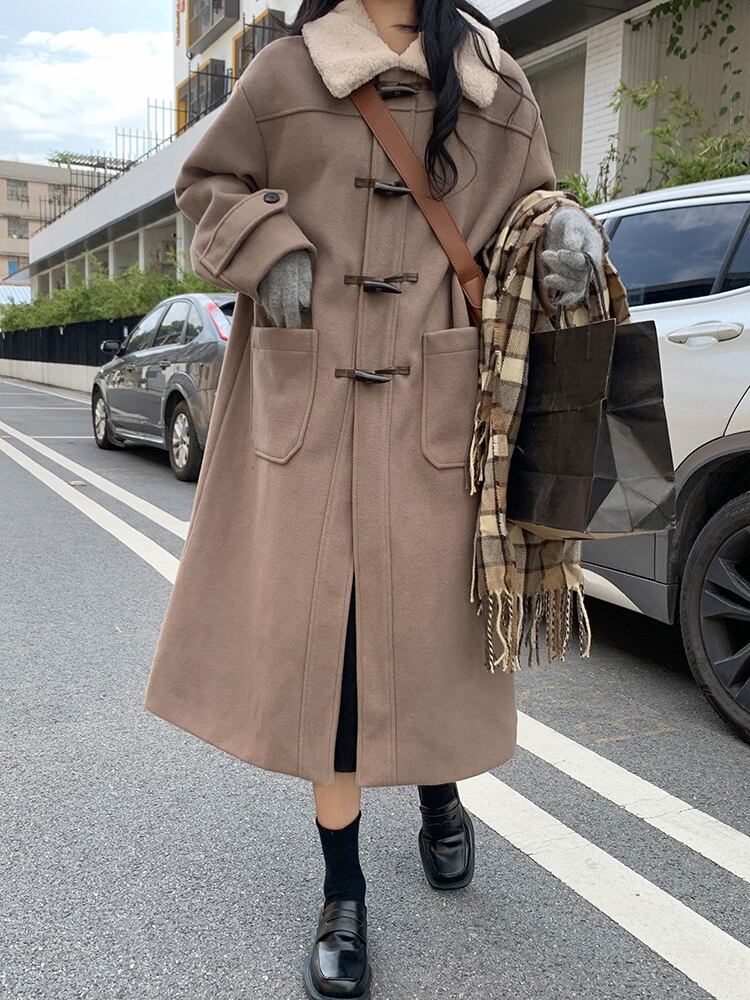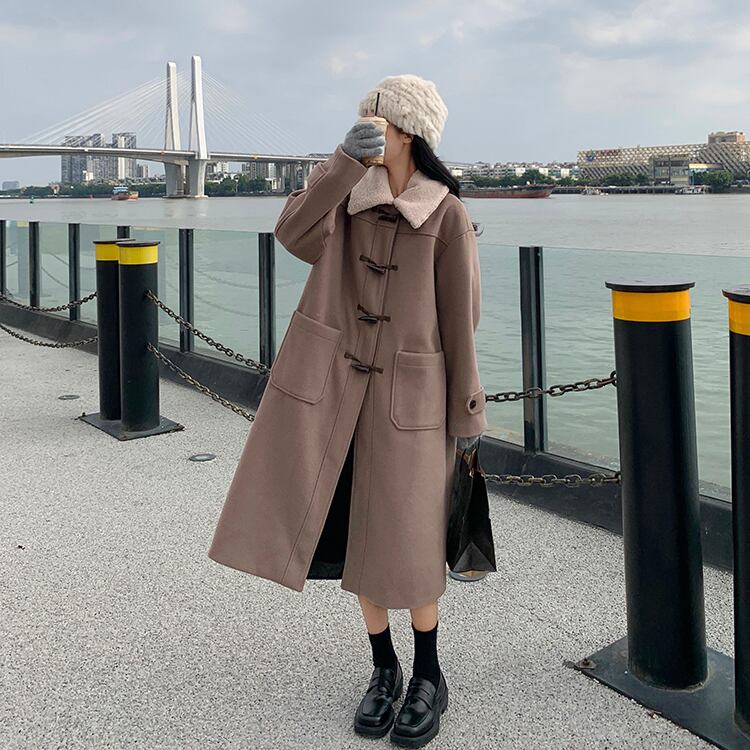 ホーンボタンが目を引くロングコート