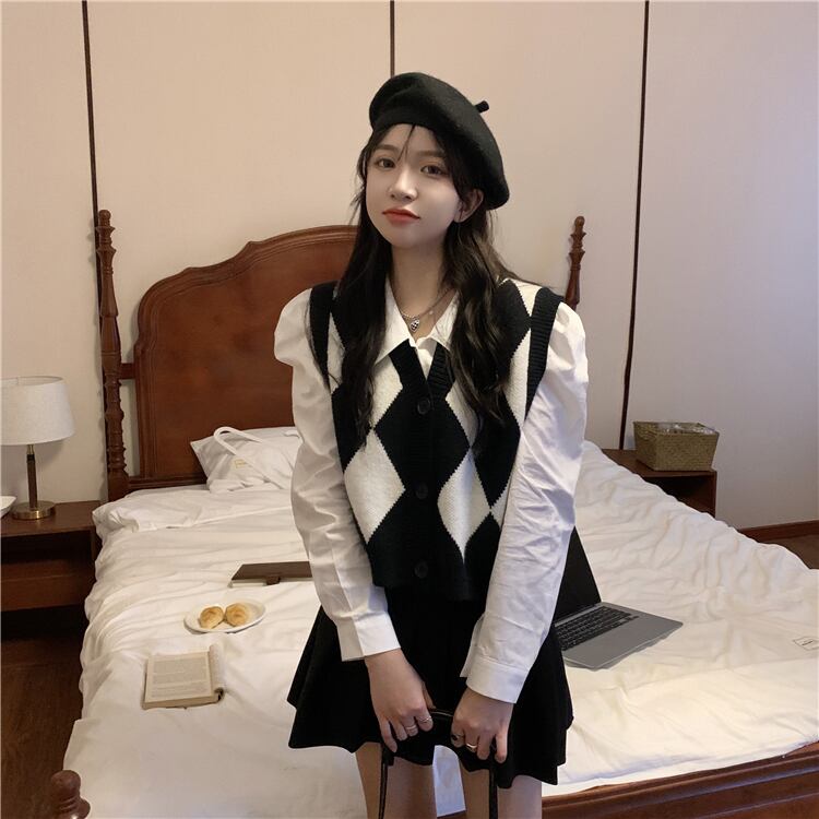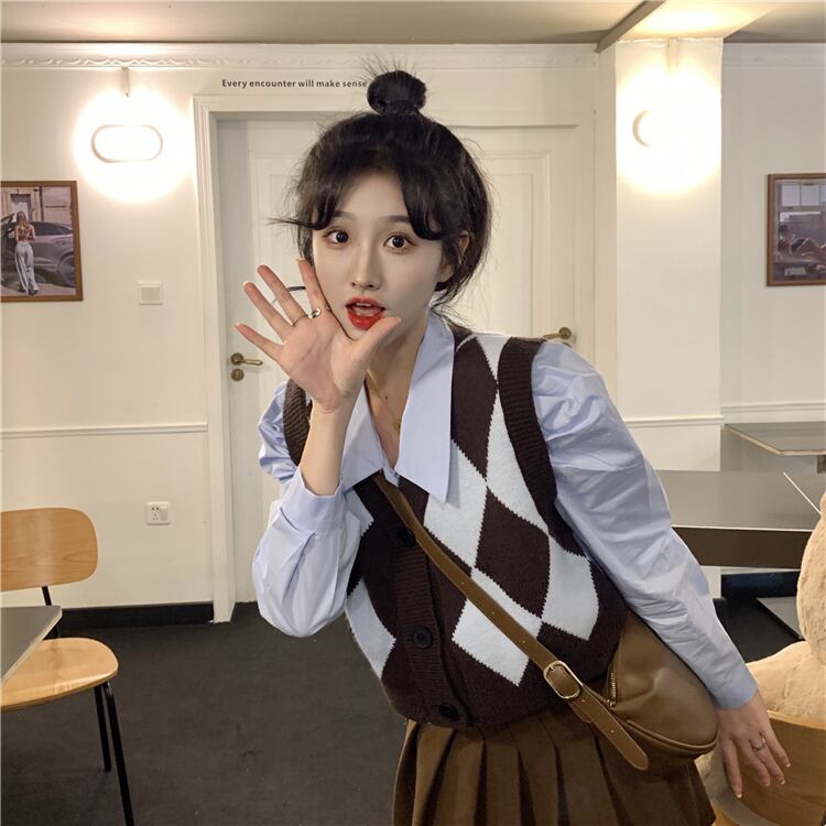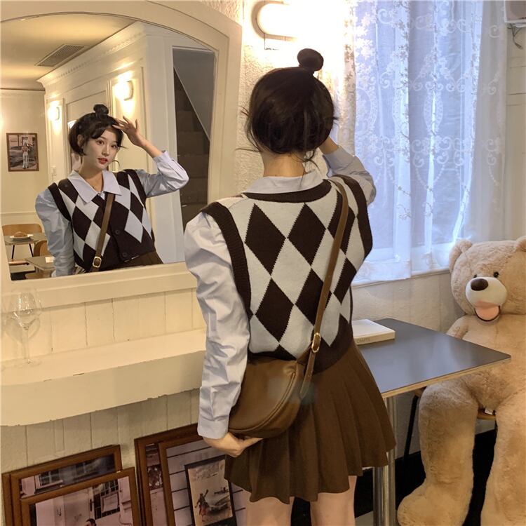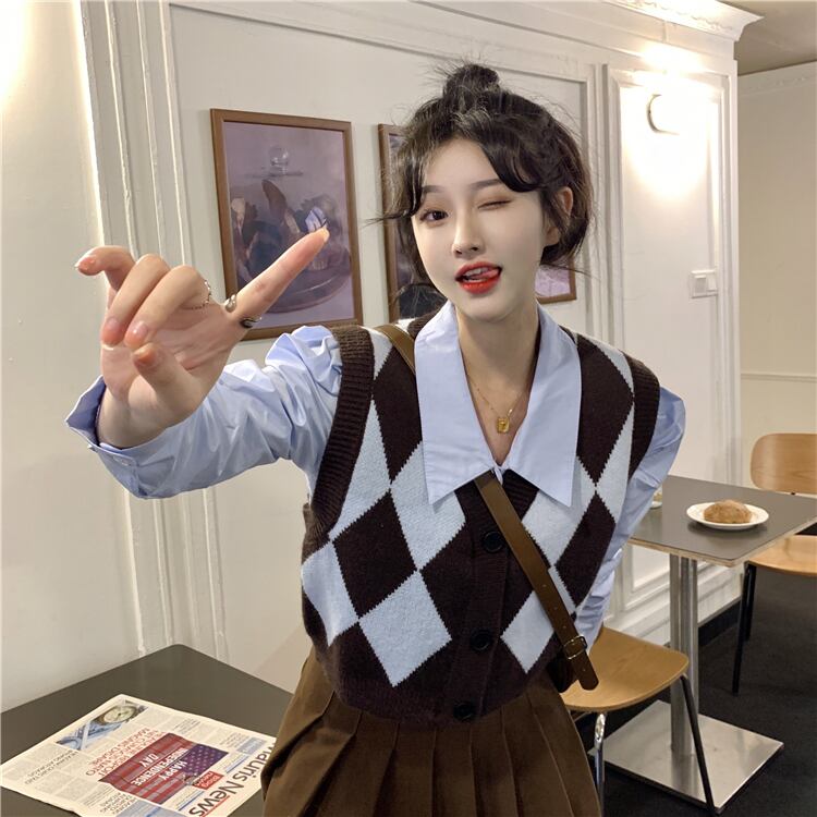 カジュアルにもレトロ風にも合わせやすいアイテム。ラフなシルエットと可愛いひし形の柄は、個性的で存在感抜群。コントラストカラーのブラックとブラウン、逆に茶色とブラックの2カラーからもお選びいただけます。まるで主役級の存在感を持つこの一枚は、普段使いや学生、通学やデート、女子会、お出かけにも大活躍です。是非、お手元に一枚加えてください。