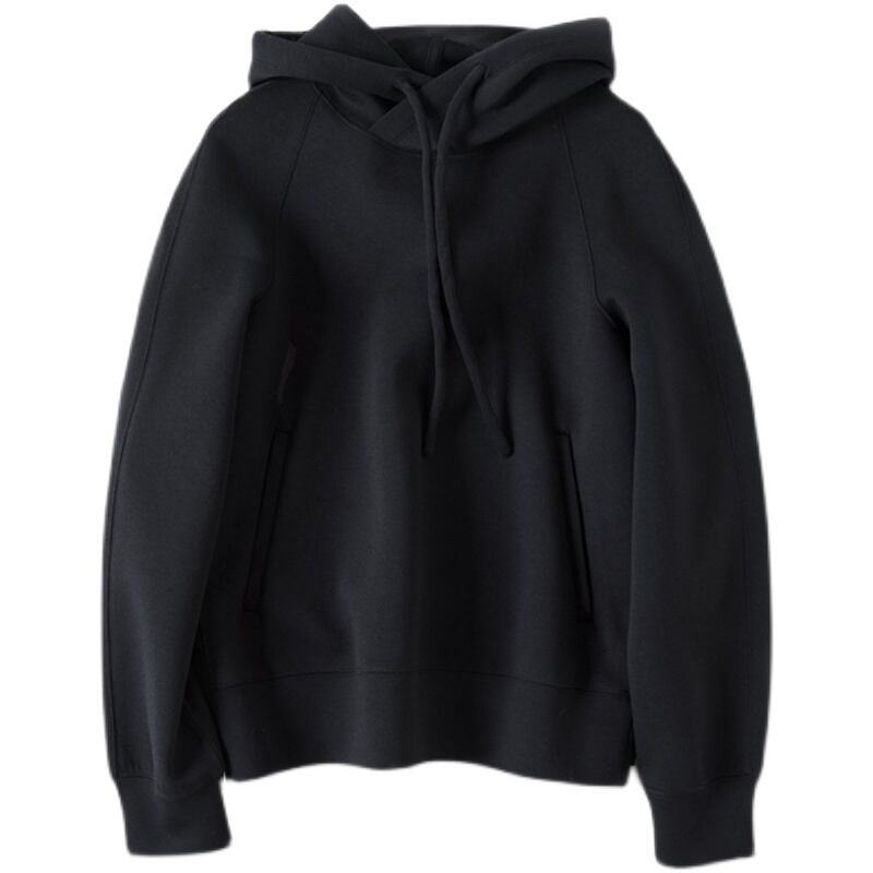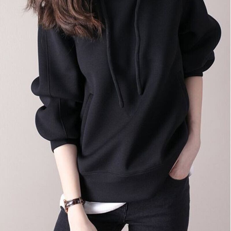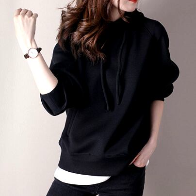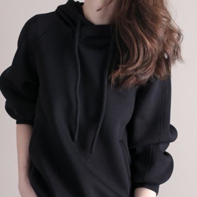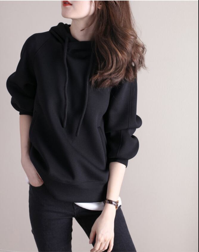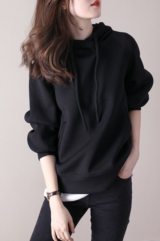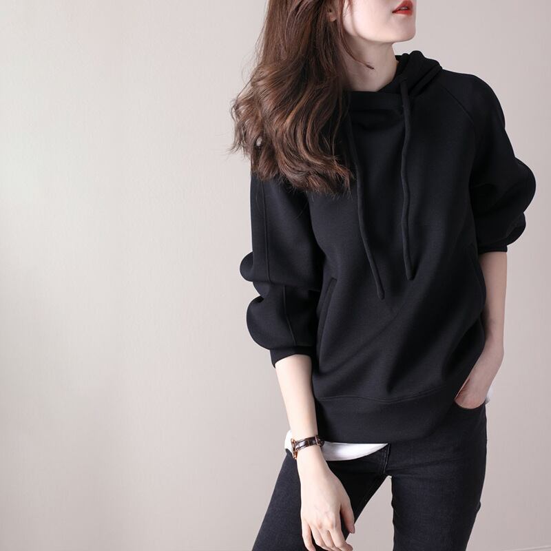 長袖無地フード付きワイルドコットンルーズトップ