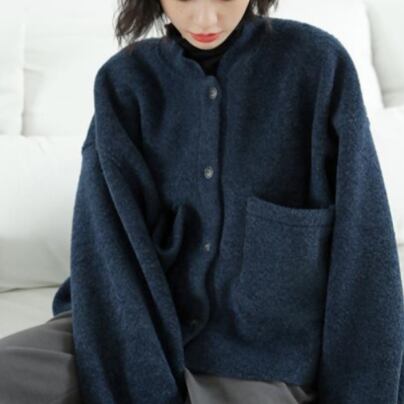 シンプルで上品なデザインが魅力のジャケットです。秋冬にぴったりなカラーのネイビーと紺が、落ち着いた大人の雰囲気を演出します。ショート丈でスタンドカラーのデザインが、あなたのスタイルを引き立てます。袖付きの長袖で、防寒性もバッチリ。機能性も兼ね備えたジャケットです。