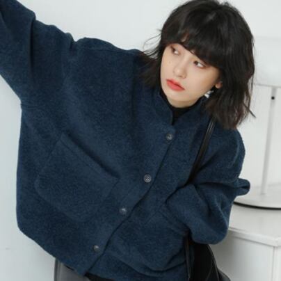 ジャケット シンプル トップス ネイビー 紺 ショート丈 秋冬特価 袖あり 長袖 スタンドカラー ストレート シングルブレスト ボタン ポケット ポリエステル 大人女子 大人 上品 おしゃれ かっこいい クール きれいめ シンプル カジュアル レトロ レトロ風 こなれ感 ラフ ルーズ シルエット 主役級 存在感 無地 秋 冬 10代 20代 30代 レディース 女性用 通勤 学生 通学 デート お出かけ 女子会 着回し 普段使い トレンド ファッション コーデ 暖かい 防寒 S M L