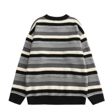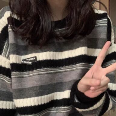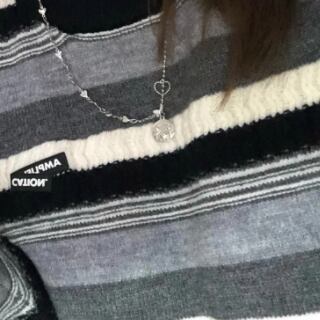 レトロ ボーダー セーター ニット ブラック 韓国流行 黒 グレー 灰色 モノクロ トップス 袖あり 長袖 萌袖 Uネック ラウンドネック かわいい 大人可愛い シンプル カジュアル 大人 おしゃれ お洒落 大人女子 こなれ感 キュート 主役級 存在感 あったかい 暖かい 防寒 楽ちん ゆったり だぼ ゆる 秋 冬 2021 レディース 女性用 学生 通学 デート お出かけ 女子会 イベント 旅行 着回し 定番 普段使い 韓国系 モテ トレンド 流行 インスタ映え おすすめ インポート フリーサイズ